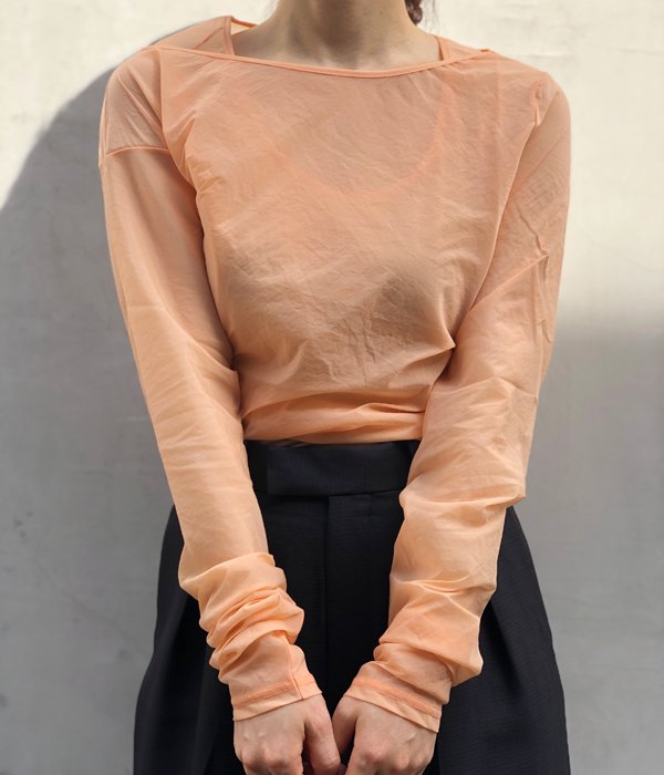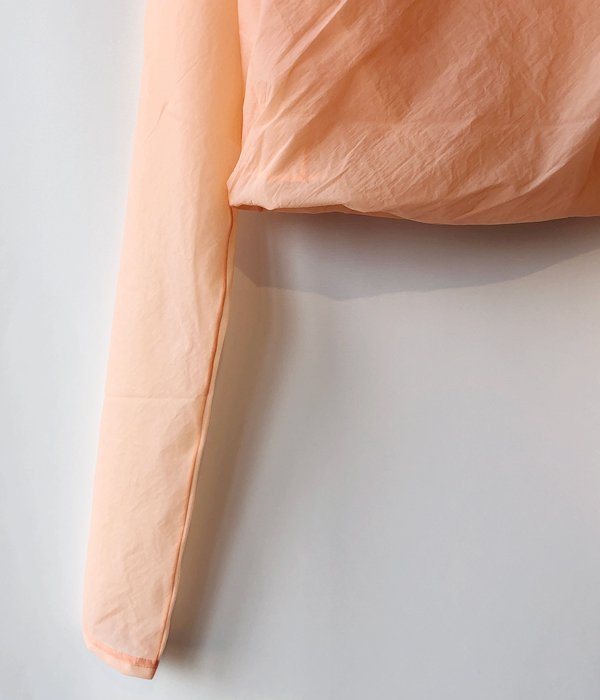 FUMIKA_UCHIDAからStretch Taffeta/LAYERED CROPPED TOPが入荷しました。オーガンジーとジャージー素材の間のような不思議な素材感のアシンメトリーバイヤストップス。二重になった身頃は、着た時に生じる色の濃淡や無二な影など透ける生地の特徴を活かしたデザイン。バルーンの裾は体が入ることでよじれ、個々の体型によってシワの出方、着丈も異なってきます。合わせるボトムスによっての印象の変化を楽しみたい一枚です。