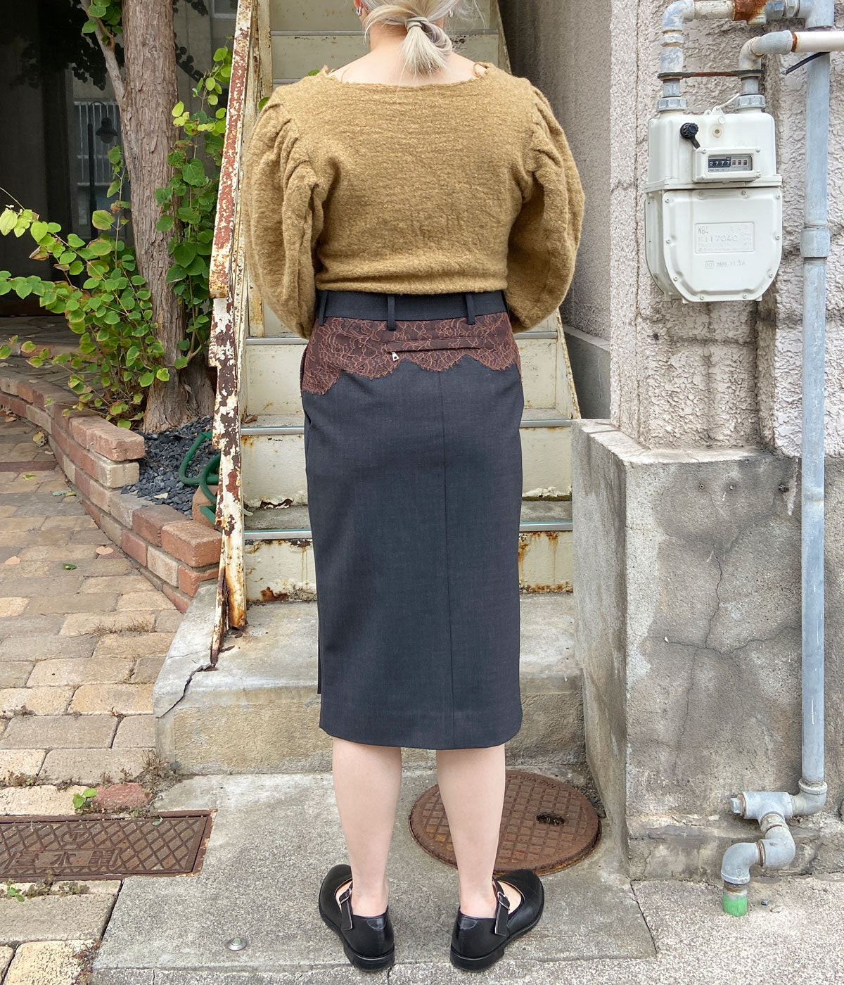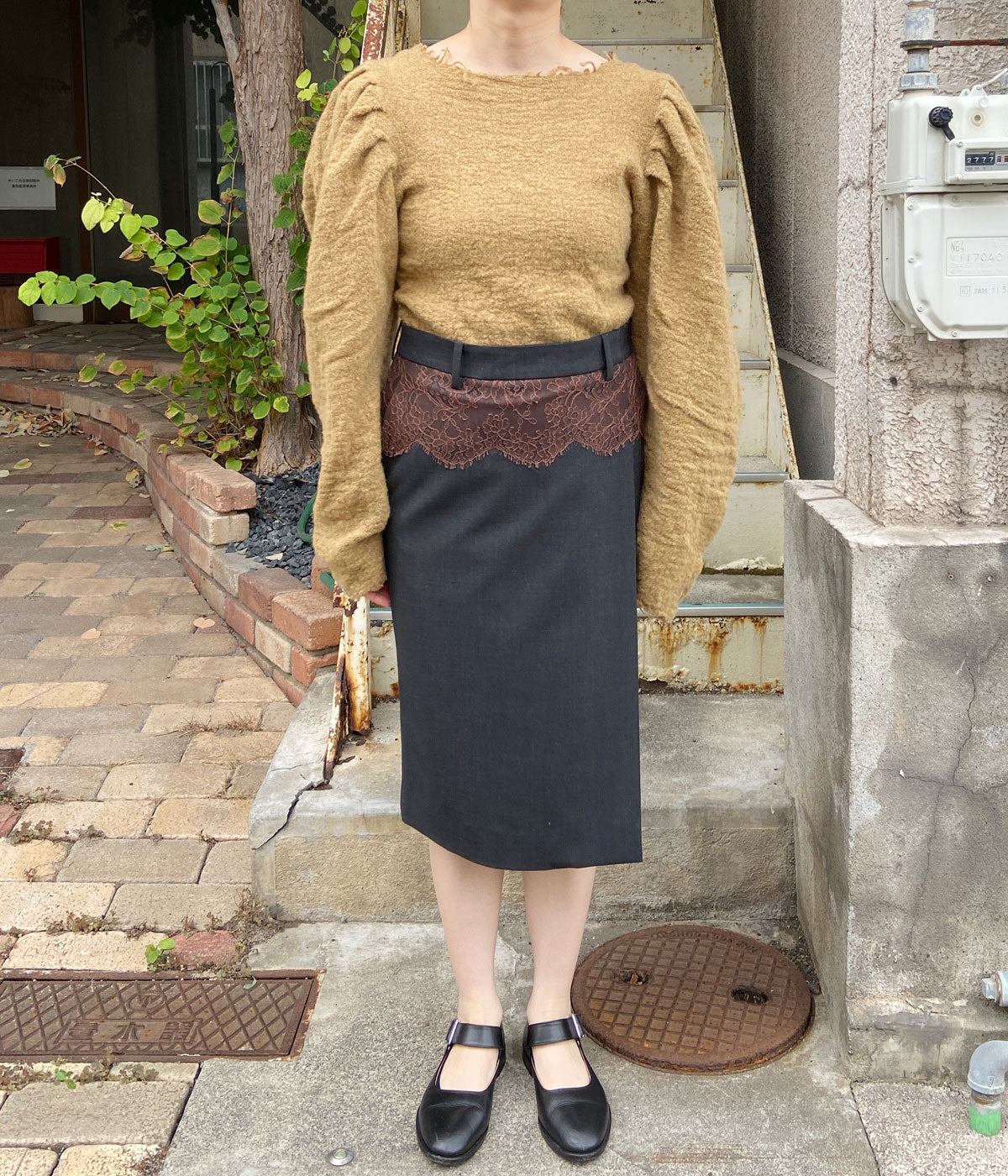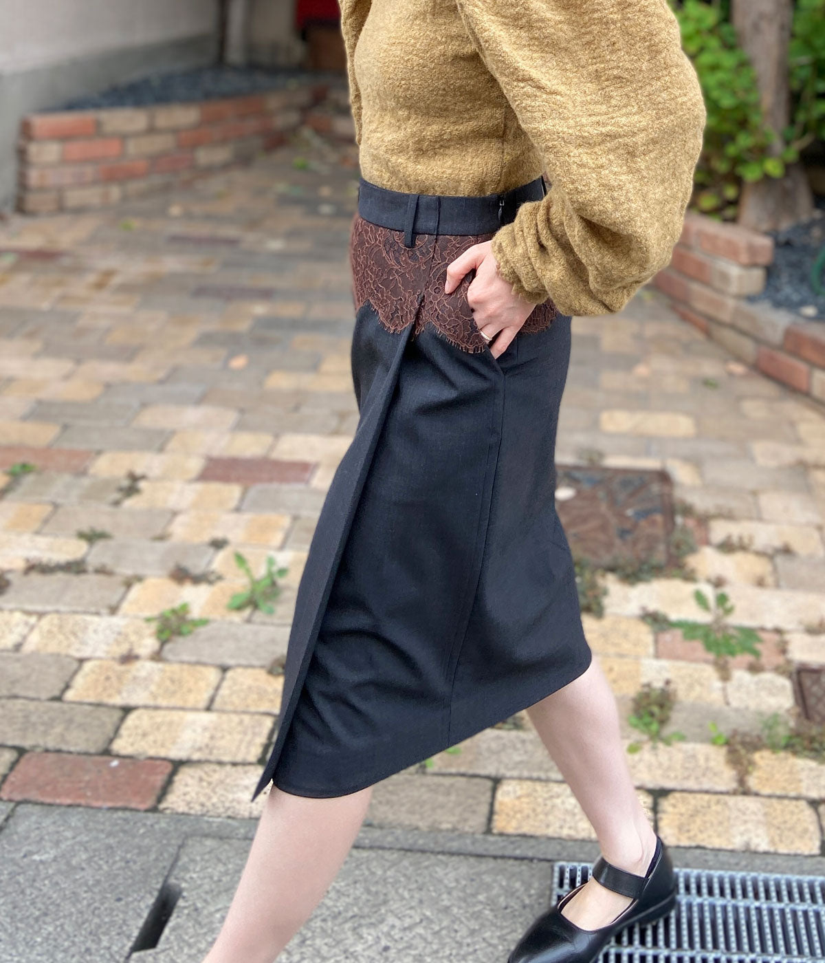 FUMIKA_UCHIDA/SUITING LACE WAIST MIDI SKIRT(CHL/BROWN)