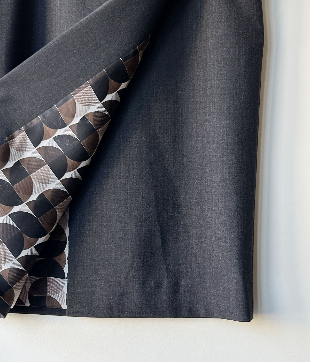 FUMIKA_UCHIDAからSUITING LACE WAIST MIDI SKIRTが入荷しました。梳毛ウールとポリエステル素材のストレッチスーチングを使用した膝下丈のフロントサイドスリットスカート。ウエストベルトの下に配されたリバーレースディテールがトップスとの境界にニュアンスを生み出す役割。