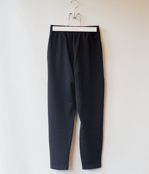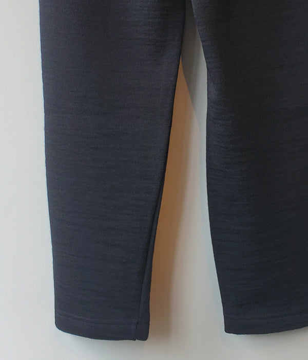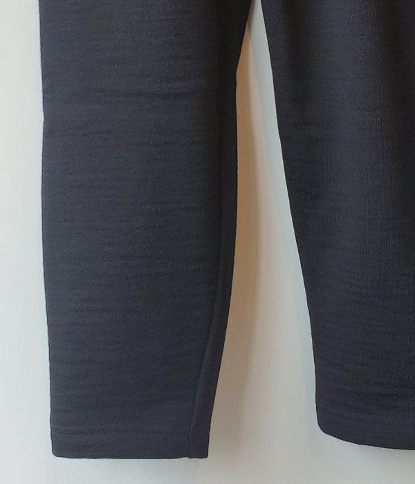 FUMIKA_UCHIDAからSWEAT PANTSが入荷しました。ジャストウエストで履くスウェットパンツ。丸み、ゆとりあるヒップ、わたりから膝下で強くテーパードさせたシルエットで、くるぶし丈の短めレングス。股ぐりにはパッチデザイン。表側にウール、内側にコットンを使用した張り感と肌当たりを考慮した素材はニットと裏毛の中間的な表情とアウトラインです。