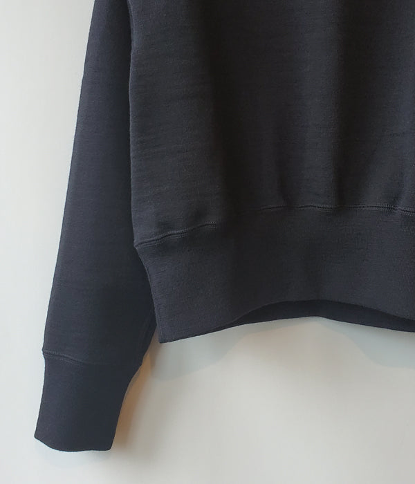 FUMIKA_UCHIDAからSWEAT SHIRTが入荷しました。18AWと同じフリーダムスリーブで、肩にポイントを置いたデザインのスウェットシャツ。ゆとりのある身頃で、裾リブにはキックバックが強いものを使用したウエスト丈。表側にウール、内側にコットンを使用した張り感と肌当たりを考慮した素材はニットと裏毛の中間的な表情とアウトラインです。