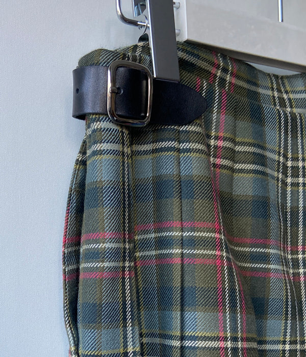 FUMIKA_UCHIDAからTARTAN PLAID BELTED PANTACOURTが入荷しました。スコットランド製の伝統的なタータンチェック柄のウール綾生地で作るショートパンツ。19世紀後半に創業されたスコットランドにあるタータンチェック生地を専門としている生地ブランドのオーセンティックな梳毛ウール素材を使用しています。伝統的で由緒あるタータンチェック柄の配色をそのままに使用。左ファスナー開き。ウエストカマーベルトデザインで両サイドに付く牛レザー素材のストラップでアジャスト。裏地がなくても優しい肌触りの一本です。