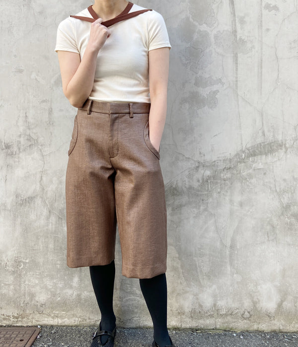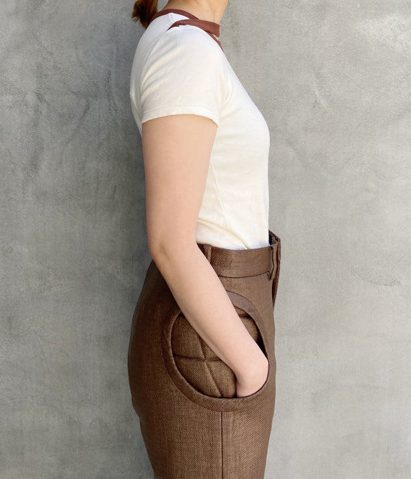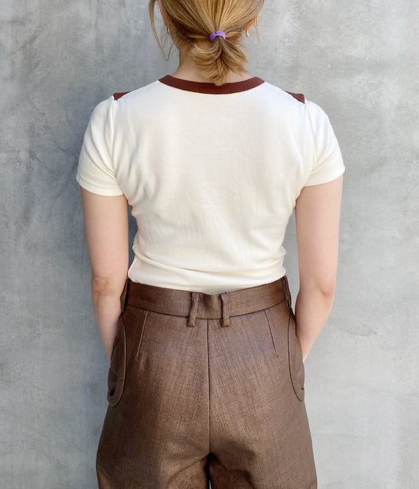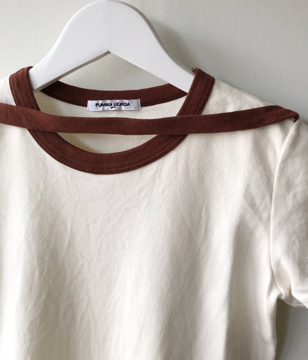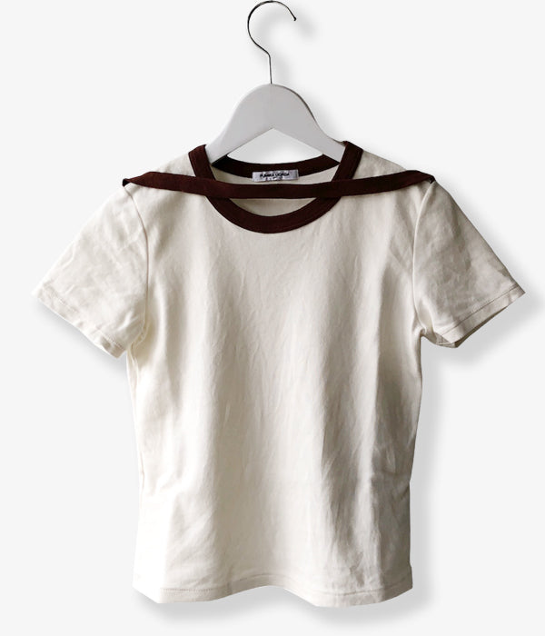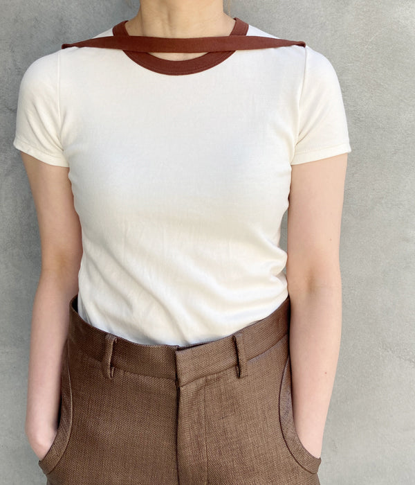 FUMIKA_UCHIDA/TRIMMED DOUBLE-NECK TEE(OFFWHITE/BROWN)
