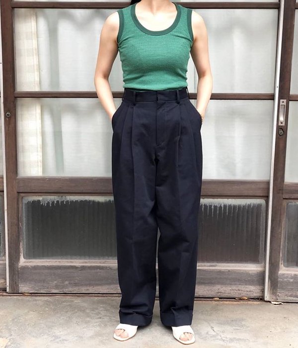 FUMIKA_UCHIDA/TWILL 3 TUCK PANTS(NAVY)