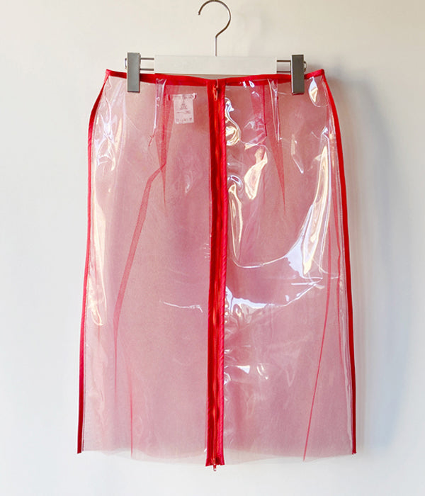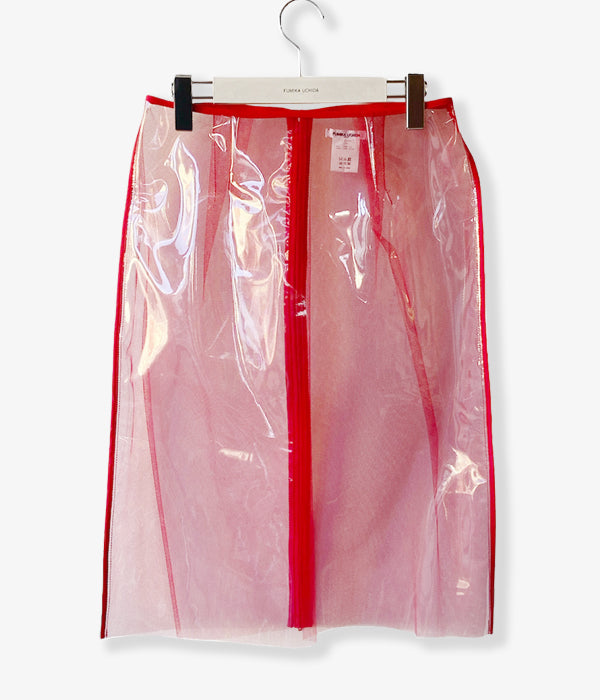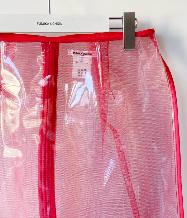 FUMIKA_UCHIDA/VINYL/TULLE BACK ZIPPED MIDI SKIRT(RED)