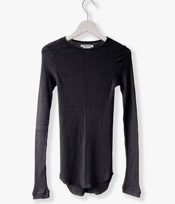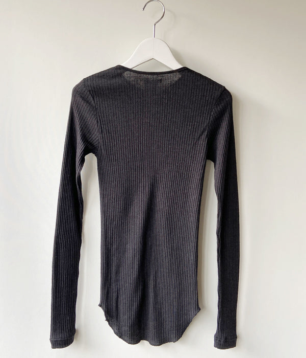 FUMIKA_UCHIDAからSILK NEEDLE DRAWING CREW-NECKが入荷しました。定番のウール・シルクの針抜きリブを使用した継続クルーネックトップス。薄く、柔らかいフィット感でありながら、保湿性に優れた一枚。洗うことにより、風合いの変化を楽しめます。詰まったネック、長めの着丈が特徴のデイリーに使用したいアイテム。