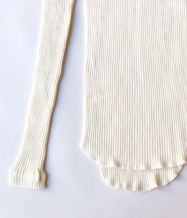 FUMIKA_UCHIDAからWOOL/SILK_NEEDLE DRAWING CREW-NECKが入荷しました。14AWのウールシルクカットソーをベースに、糸質・針抜きリブのピッチ・風合い・ネックの詰まりや着丈をアップデート。袖を通した瞬間、ふわっとしっとり肌に馴染む極上の着心地の一枚。暖かみもありインナーとしても活躍してくれます。
