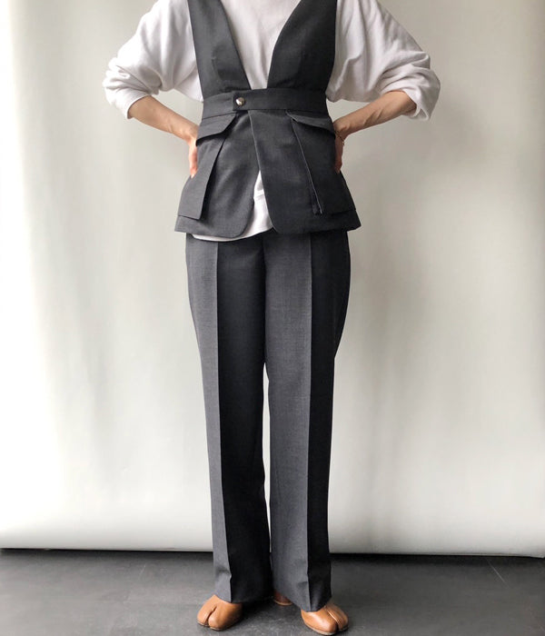 FUMIKA_UCHIDA/WOOL SUITING STRAIGHT SLACKS(TOP CHARCOAL)