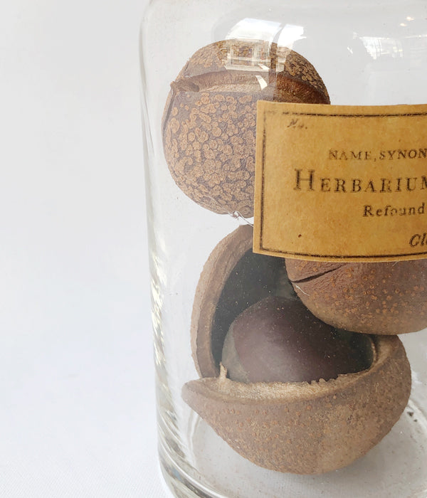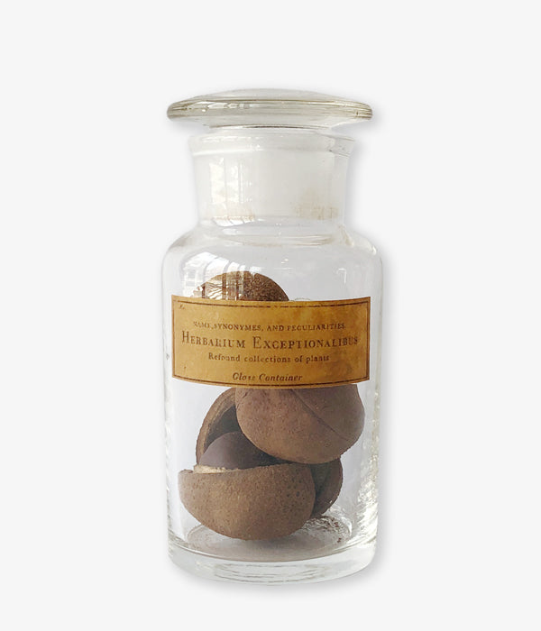 試薬瓶の中に乾燥植物を収納したGLASS CONTAINER Botanical( グラスコンテナ ボタニカル)。国内で数社、そこで働く僅かな職人さんのハンドメイドにて試薬瓶は作られています。過去に生物学者が植物を入れて標本にしていた事をヒントに、普段あまり見かけない乾燥した植物を収納しました。製壜業界と植物の再生をコンセプトにした博士の標本、お部屋のインテリアにいかがでしょうか?
