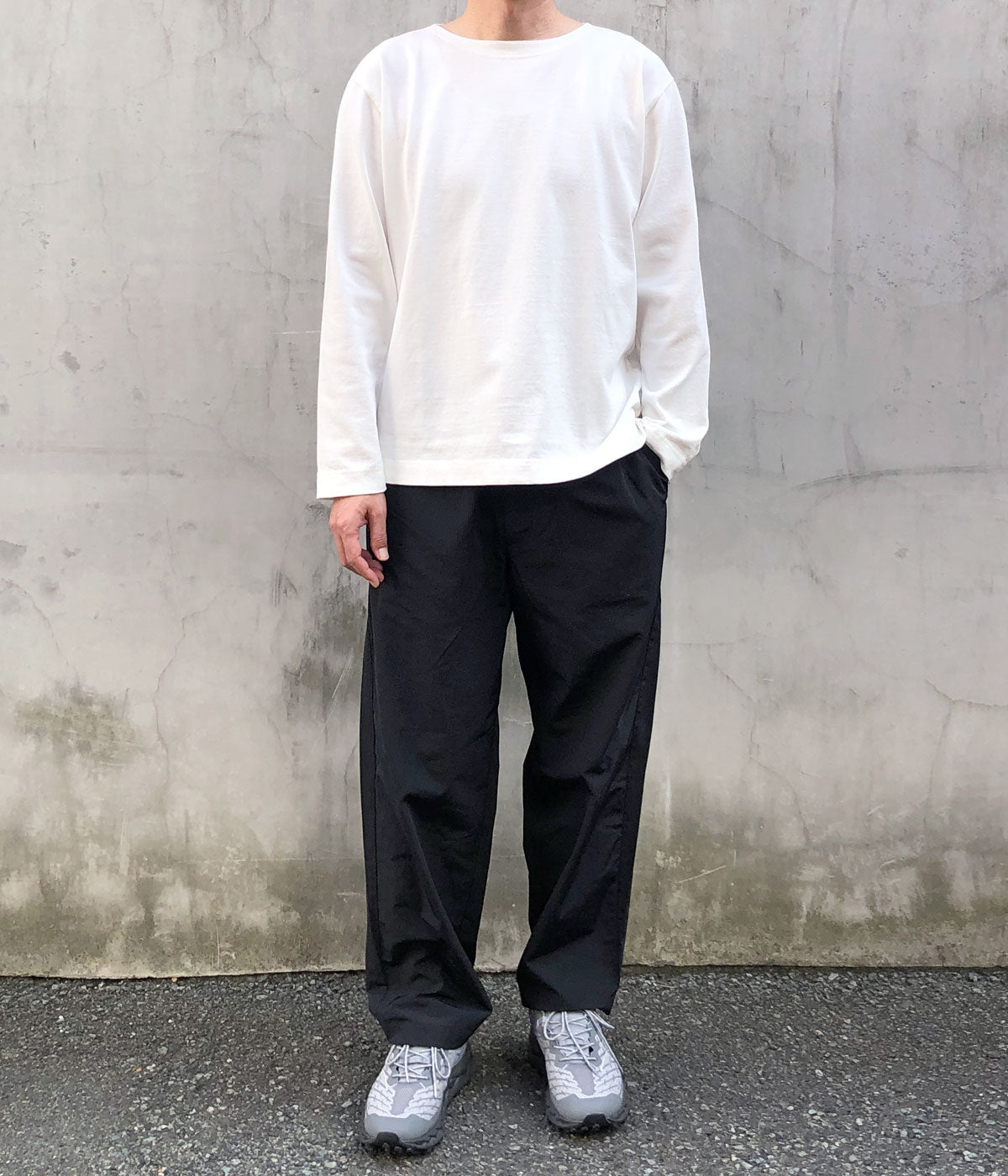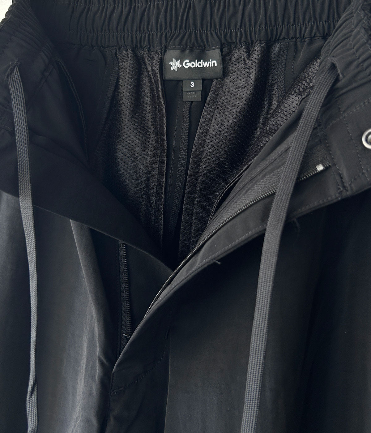Goldwinから、RELAXED STRAIGHT EASY PANTSが入荷しました。リサイクルナイロンを使用しワイドストレートシルエットで仕上げた、シャリ感のある風合いが特徴のパンツ。ナイロン素材ならではの軽やかな着用感が魅力。前開きのウエスト周りは、ゴム+ドローコードのイージー仕様。ポケット右側にファスナー付きのセキュリティポケットを備えます。