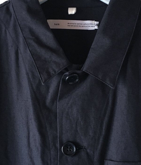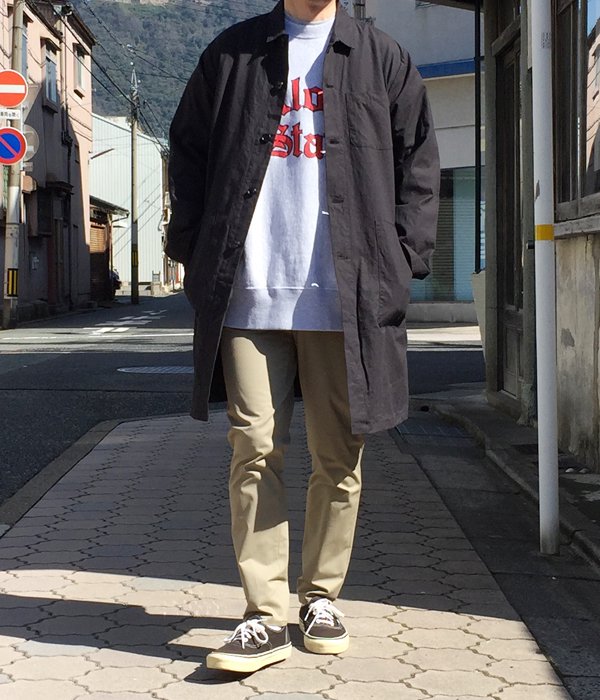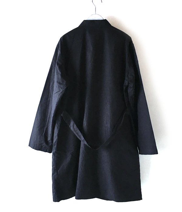 ネップ感のある生地が独特の風合いを醸し出すミドルコート。シャツ感覚でラフに羽織ってさまになりスタイリングを引き立てる一着。縫い付け式の飾りベルトがバックスタイルのアクセントに。