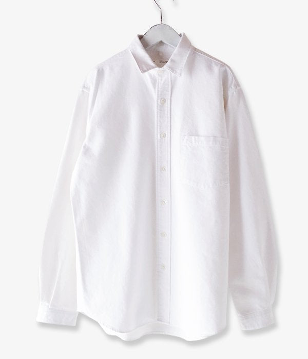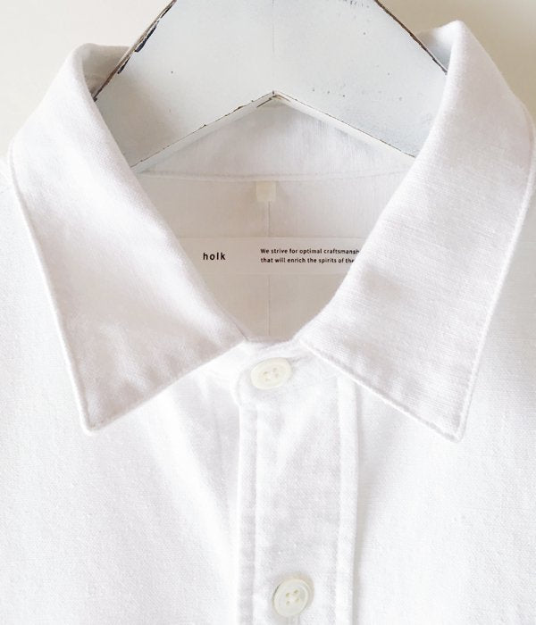 holkから、CLASSIC SHIRTSが入荷しました。人の手で優しく紡がれた"手紡ぎ糸"を使用した、独特の不均一な風合いが特徴のWHITE SHIRTS。厚手ながらも優しい肌触りの存在感のある仕上がり。小振りなカフス&カラーに、バストにはパッチポケットの仕様。