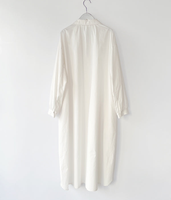 holkから、LONG BLOUSEが入荷しました。光沢感とつるっとした質感が特徴のコットン生地を使用したオーバーワンピ。ゆったりシルエットにオープンカラー仕立てのカジュアルな雰囲気と、プリーツを多用したバックスタイルと袖口がフェミニンなデザイン。両サイドにスリットポケットを備えます。深めにあしらったサイドスリットもポイント。