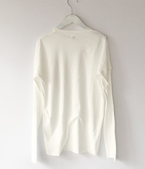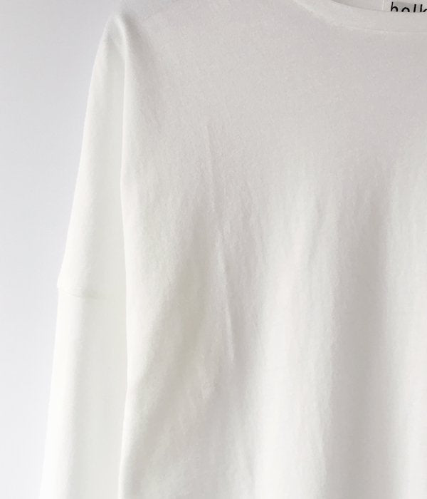 holkから、LONG SLEEVE WOMENSが入荷しました。しっとりとした質感でとろみがあり、肌触りの良いコットン LADYS LS T-SHIRT。ドロップショルダーに仕立て、袖と裾はカットオフ仕様に。細めのネックリブがとても上品な印象。