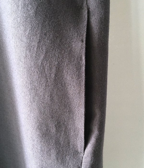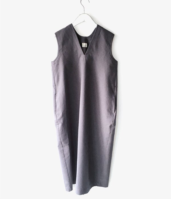 holkから、NO SLEEVE DRESSが入荷しました。コットン、ポリのミックス素材によるドライな質感と、素材由来のふくらみのあるシルエットが特徴のNO SLEEVE OP。前Vネック仕立てでインナー次第で色々コーディネートが広がる遊べる一着。サイドポケット付き。
