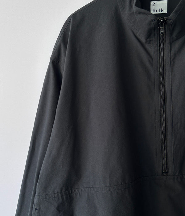 holkから、PULLOVER SHIRTが入荷しました。ハリのあるコットン素材を使用したプルオーバーシャツ/ジャケット。ハーツジップのスタンドカラーに、袖口と裾周りはゴム入りシャーリング仕立て。両サイドのメッシュポケットは内部でつながったカンガルーポケット仕様。