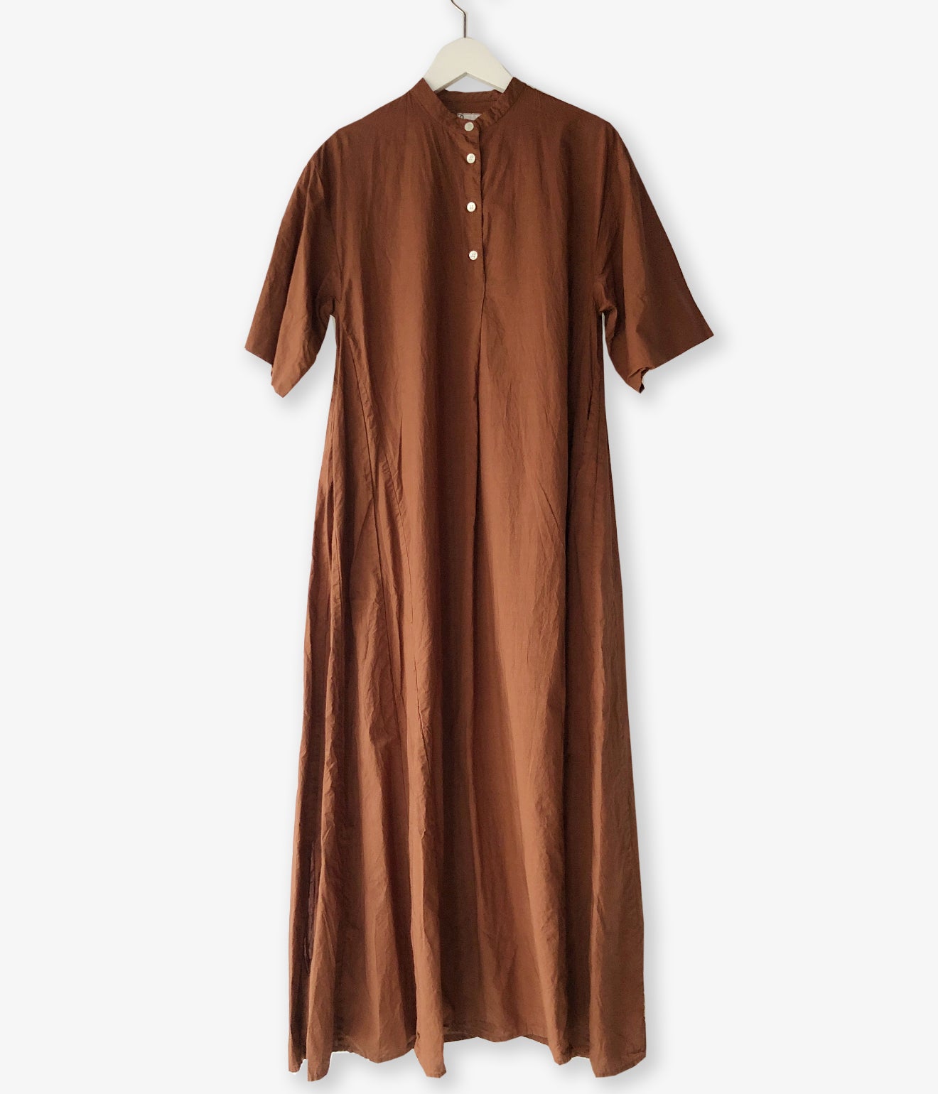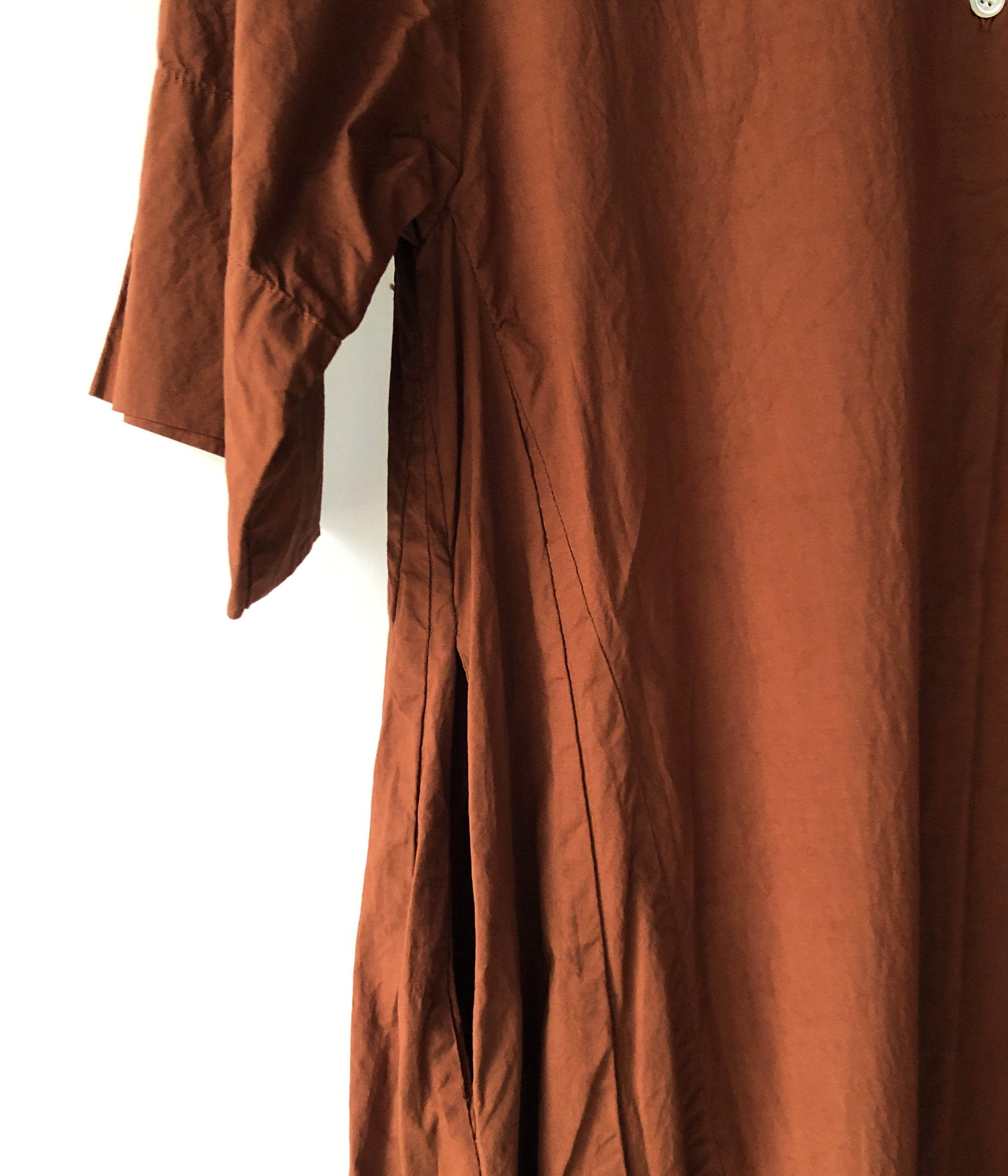 holkから、SHIRT DRESSが入荷しました。カラーレスのP/Oシャツ仕立てのショートスリーブワンピースです。涼しい肌当たりの綺麗なコットン素材を使い、サイドから立体的にパターンを切り替え裾に向かってボリュームのあるシルエットを作り出しました。サイドシーム沿いにポケットを2か所設けました。