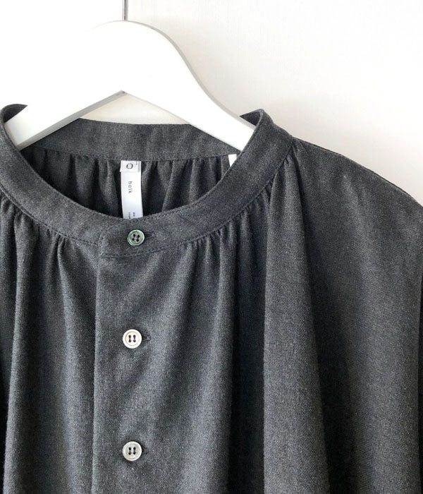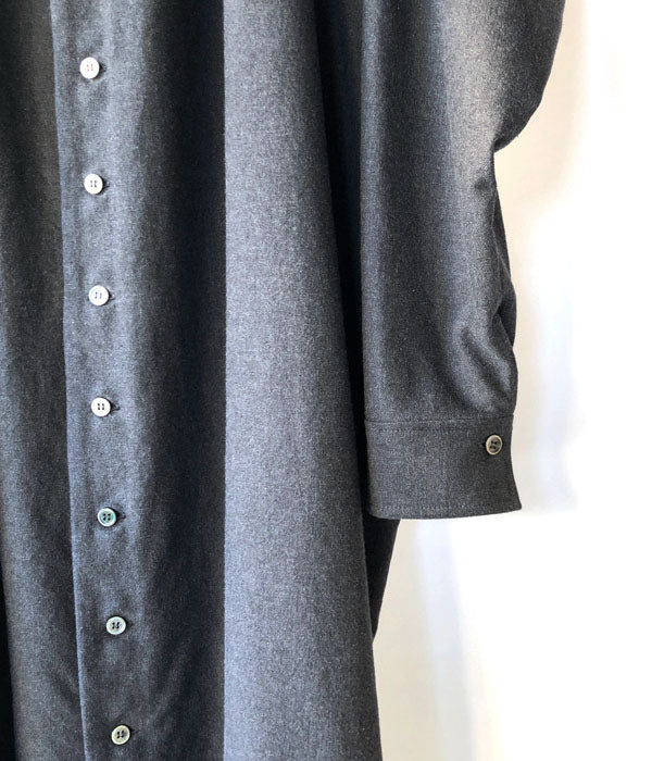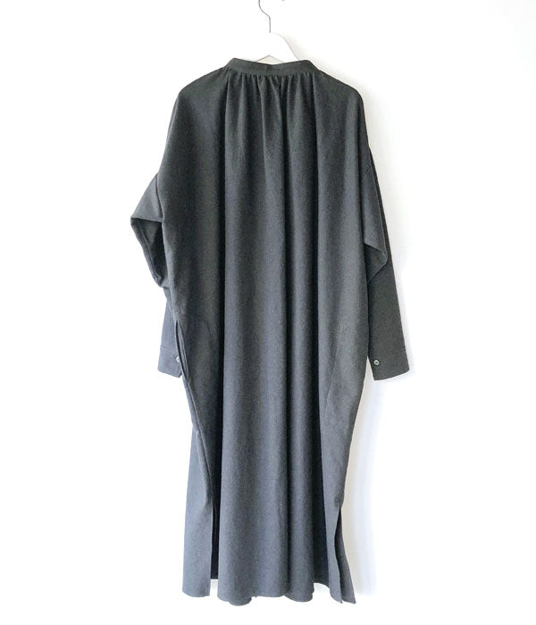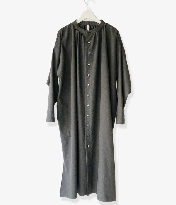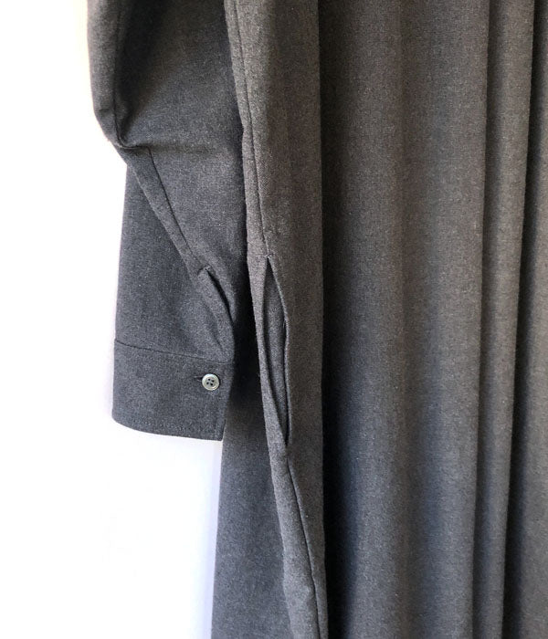 holkから、SHIRT DRESSが入荷しました。厚みがありながらも柔らかな風合いのコットン生地を使用し、スタンドカラー仕立てと、ボタン前開きデザインによるシャツドレス。ゆったりとしたサイジングに加え、プリーツを多用したふくらみのあるシルエットが特徴です。サイドシーム沿いにポケットを備え、裾にはスリットをあしらい動きのあるシルエットを演出します。