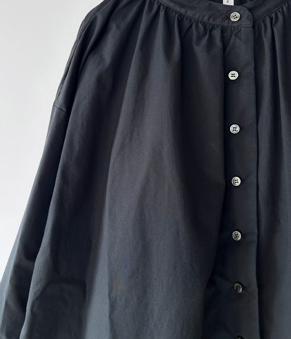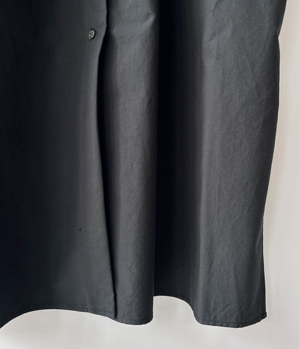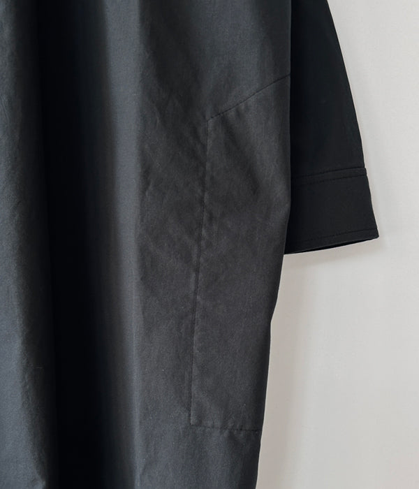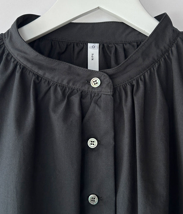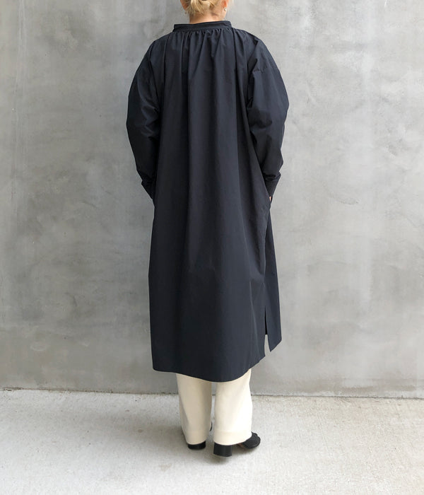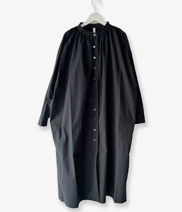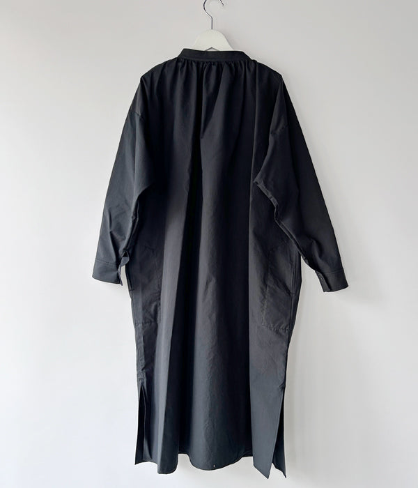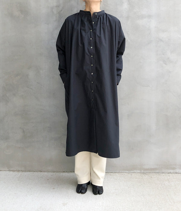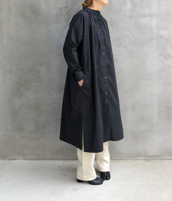 holkから、SMOCK DRESSが入荷しました。たしかなハリがありながらも優しい風合いのコットン生地を使用し、スタンドカラー仕立てと、ボタン前開きデザインによるシャツドレス。ゆったりとしたサイジングに加え、プリーツを多用したふくらみのあるシルエットが特徴です。カフス付きの袖口、サイドシーム沿いにポケットを備え、裾にはスリットをあしらい動きのあるシルエットを演出します。