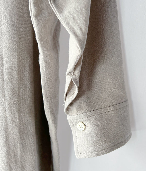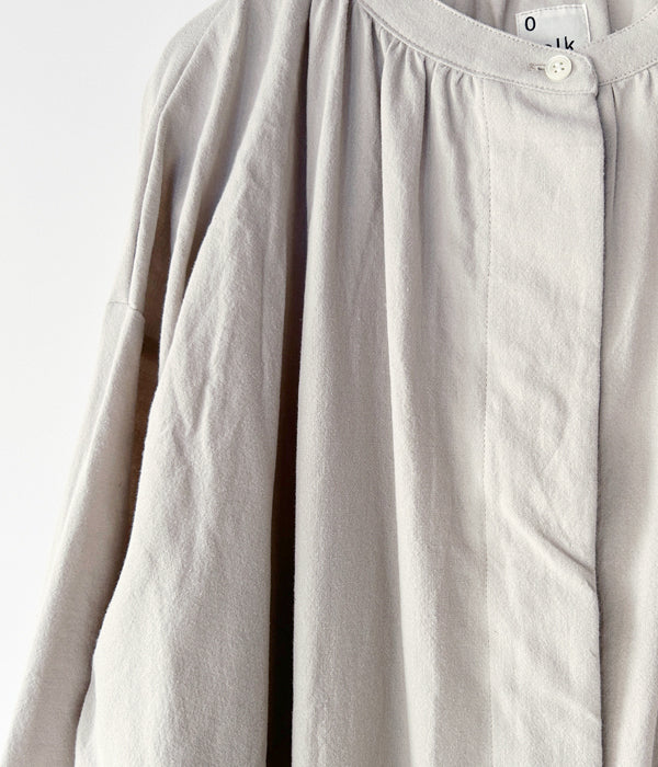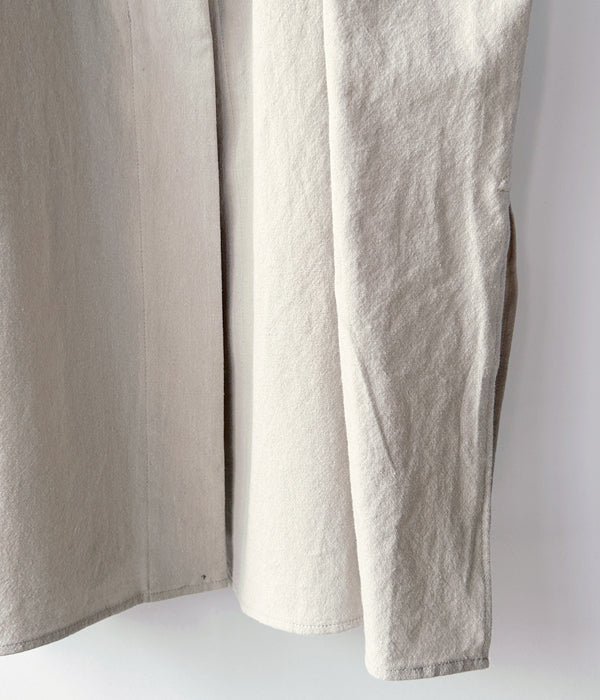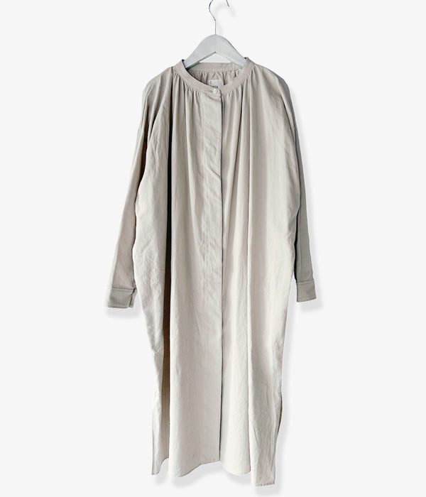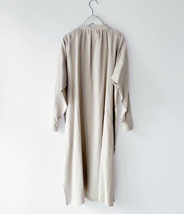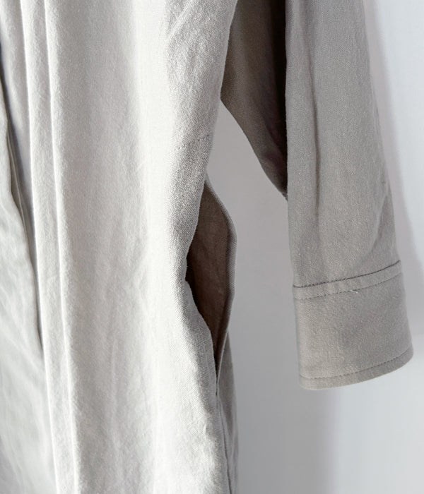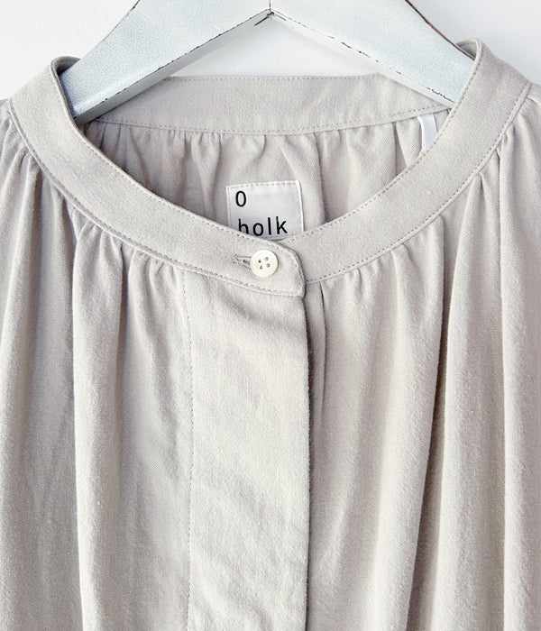 holkから、SMOCK DRESSが入荷しました。リネンミックスによる通気性、放湿性に優れた素材を使用したスタンドカラーワンピース。比翼仕立ての前開き、カフスデザインの袖口、サイドラインに沿ったポケット付き。両サイドに深めのスリット入り、スモック仕立てのかわいらしいデザインです。