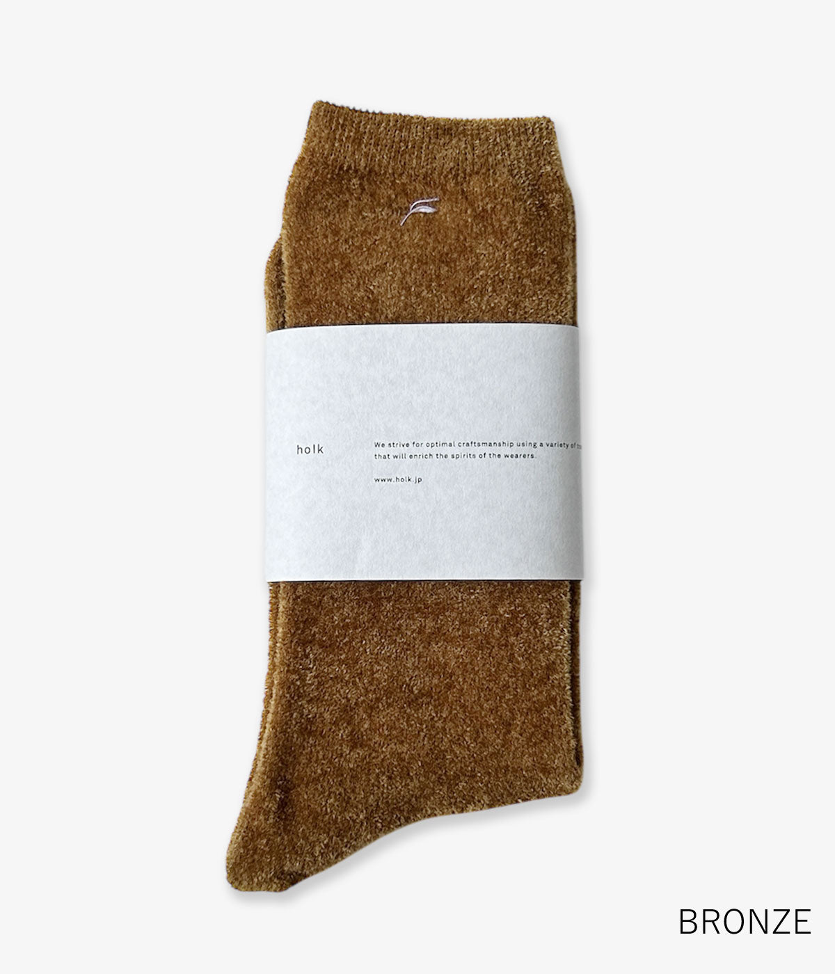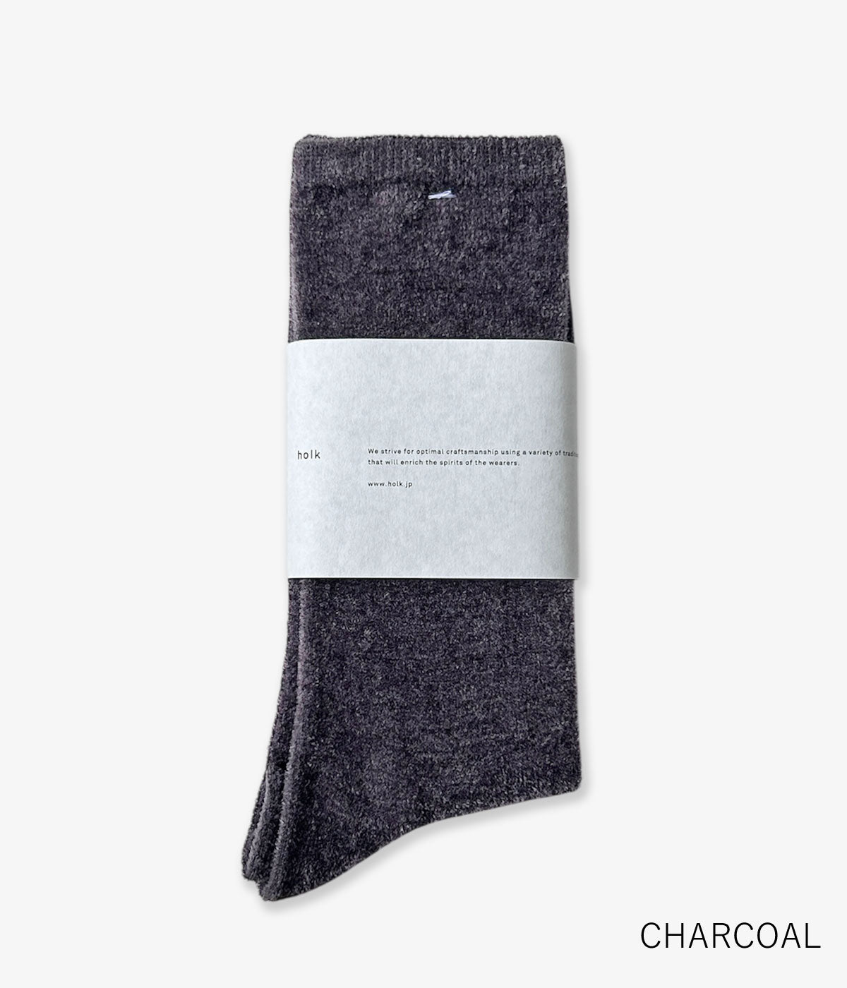 holkから、SOCKSが入荷しました。レーヨンをベースとしたミックス素材を使用したパイル製クルーソックス。光沢があり清潔な印象を与え、柔らかく心地よい生地感がくせになります。定番カラーから差し色まで揃った4色展開。