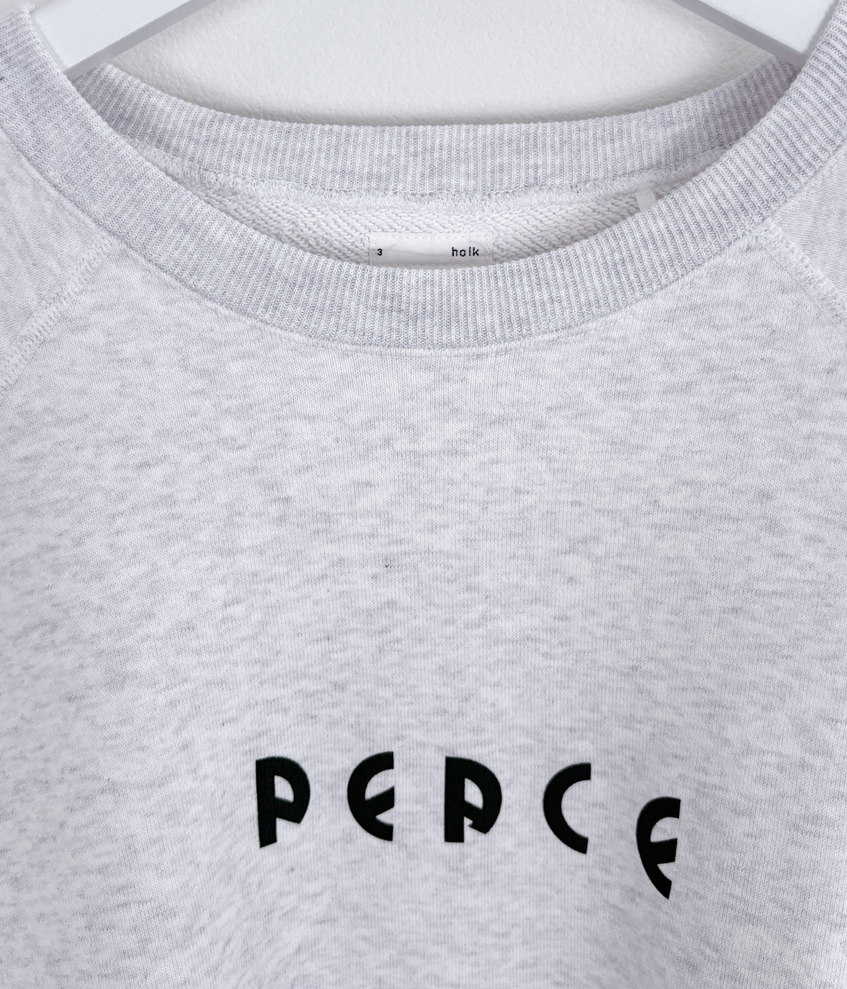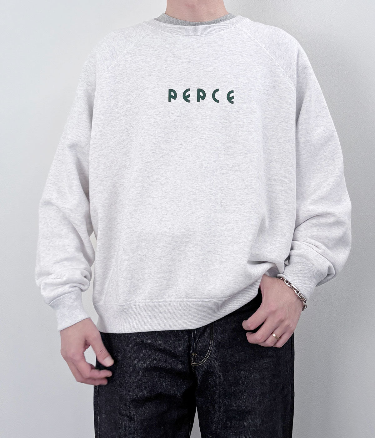 holkから、SWEATが入荷しました。裏パイル仕様のふっくらと柔らかな風合いのコットン素材を使用したクルーネックスウェット。身幅のゆったりとしたシルエットに、ラグランスリーブ仕立ての着心地抜群の一着。フロントにPEACEのメッセージを込めました。グリーンのプリントが渋いです。