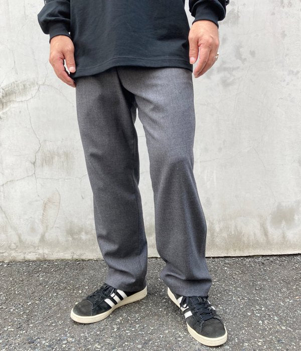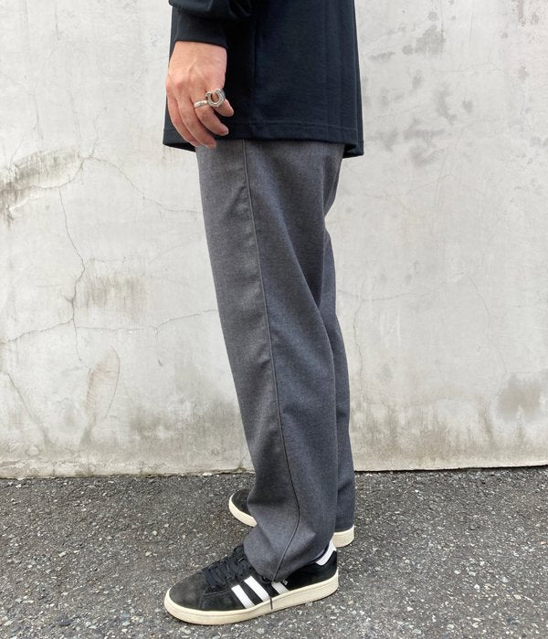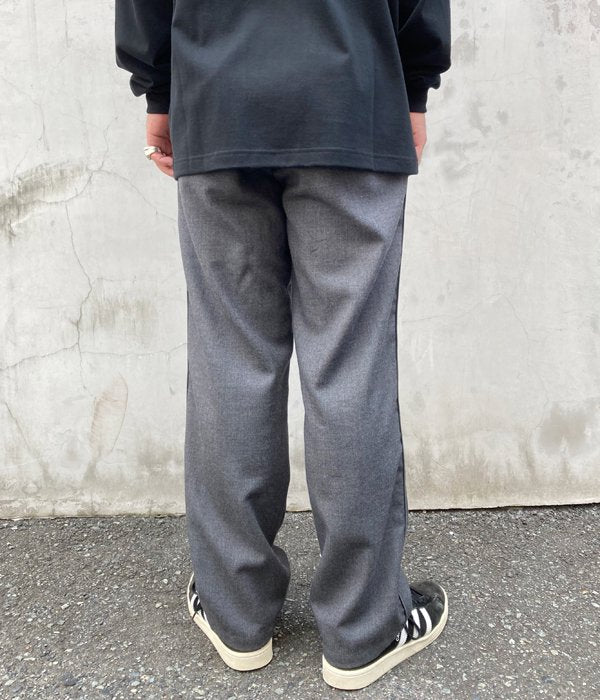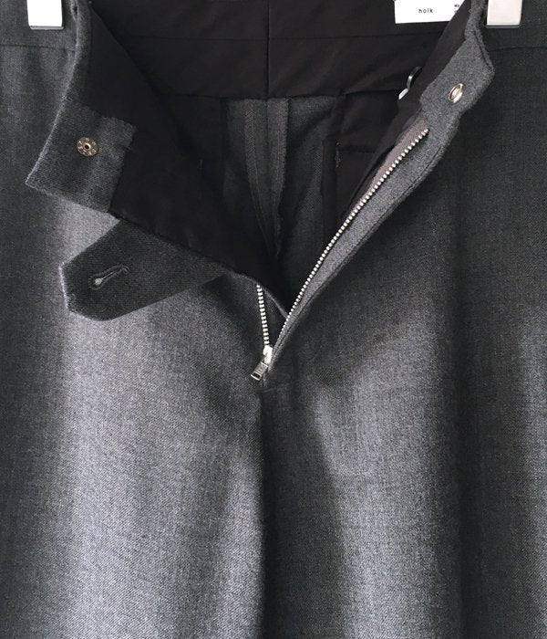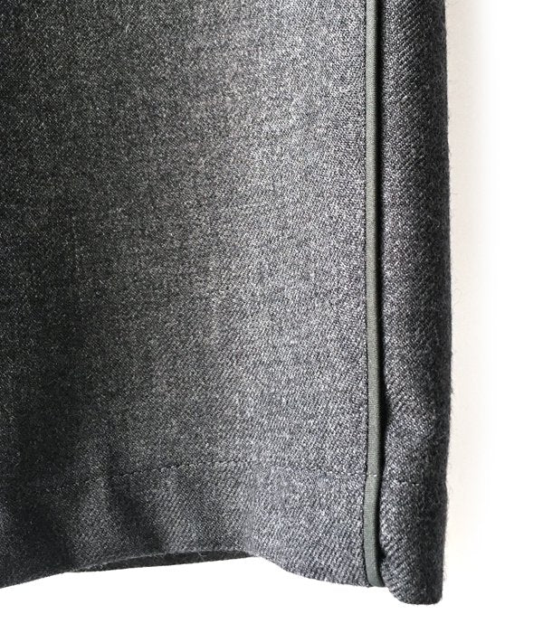 holkから、TRACK PANTSが入荷しました。細過ぎないリラックスしたストレート仕立ての一着。落ち着いた色味のウール素材に、サイドのパイピングラインがトラックパンツのようなスポーティーなデザイン。
