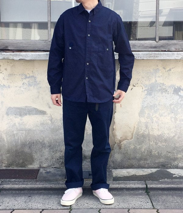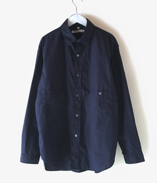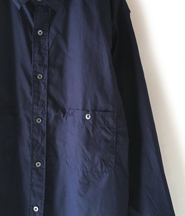 ゆったりしたサイジングのコットン素材のシャツ。やや下にずらして配置したバストポケットにはペンシルポケットも備えたワーク仕様。