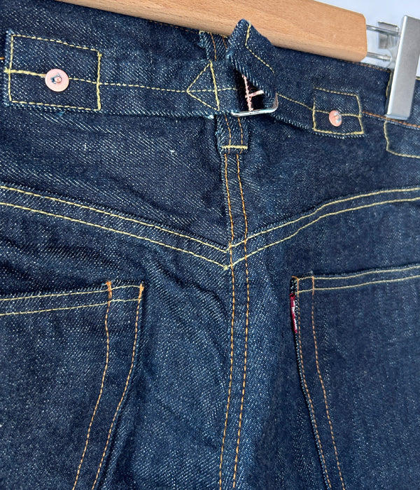 INTERIMから、1937XX" SHUTTLE DENIM TROUSERSが入荷しました。14ozとヘビーオンスなコットンデニム生地をを使用したデニムパンツ。1937年製のXXをモチーフに、スタンダードなストレートシルエット、深めの股上などのフォルムをトレースした再現性の高い1着。鉄製のオリジナルロゴ入りボタン(特殊メッキ加工入り!)や、隠しリベットに股リベット、鉄製針刺しシンチバックによるクラシックなディティール。
