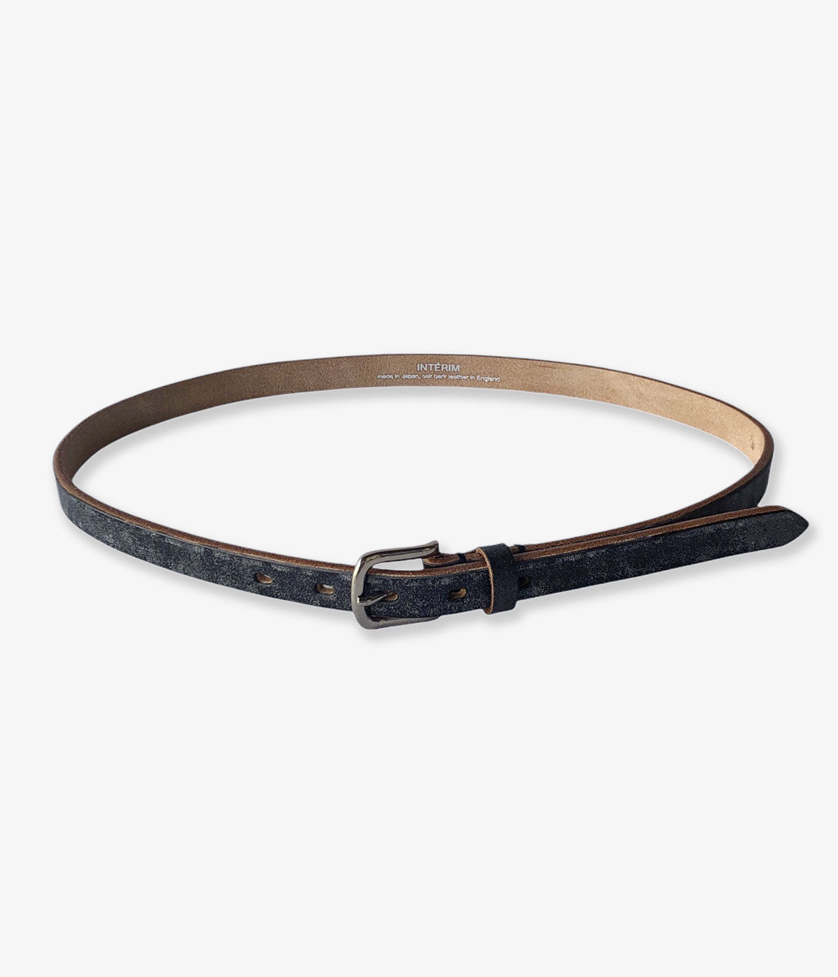 INTERIMから、20mm OAK BARK LEATHER BELTが入荷しました。高級靴のソールに使用される貴重な英国産オークバークレザー製のベルト。丁寧ななめしにより粘りとコシが持ち味の味わい深い逸品。細身の20mm幅に、シンプルなシルバーのシングルピンバックルに5穴仕様のクラシックな仕上がり。