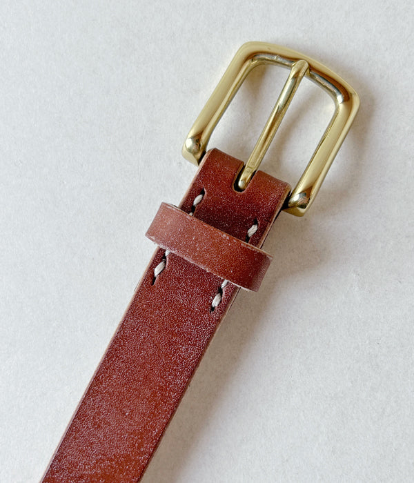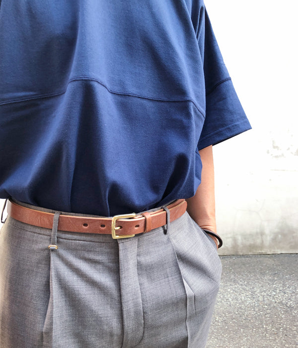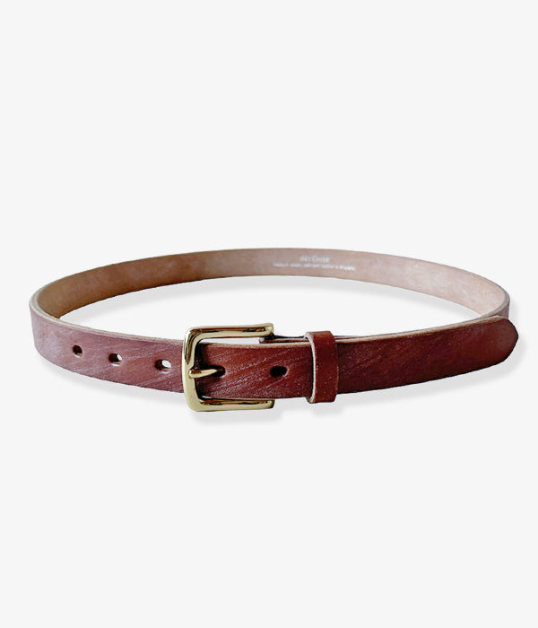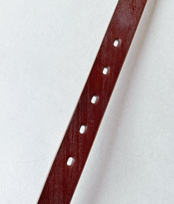 INTERIMから、25mm OAK BARK LEATHER BELTが入荷しました。高級靴のソールに使用される貴重な英国産オークバークレザー製のベルト。丁寧ななめしにより粘りとコシが持ち味の味わい深い逸品。太すぎず細すぎずな25mm幅に、シンプルなシルバーのシングルピンバックルに5穴仕様のクラシックな仕上がり。