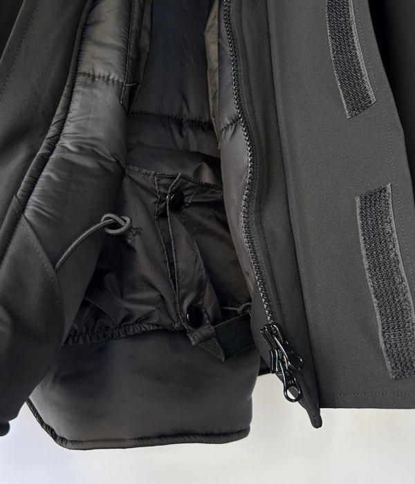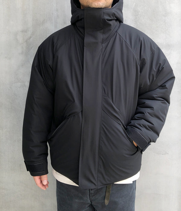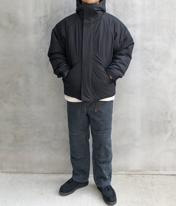 INTERIMから、HI-LOFT WATER PROOF INSULATED HOODED JACKETが入荷しました。80-90年代のアメリカにおいて、タフな環境に従事するワイルドな人々からの支持を集めた某ブランドの某ジャケットをモチーフに仕立てた中綿ジャケット。表地には最⾼レベルの防⽔性、透湿性、低結露性を誇るダーミザクス素材、中綿にシンサレートハイロフトを採用し、最新鋭の機能素材を取り⼊れてアップデート。フード周り、裾周りに機能的なアジャスター機構を備え、裏地のウエスト周りには今では珍しいスノースカートのディティール。大きなポケットに、ダブルフライフロント仕⽴て。
