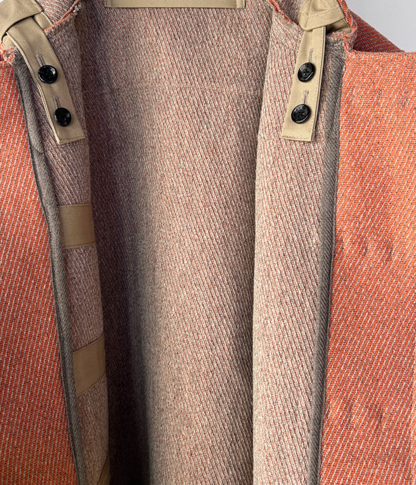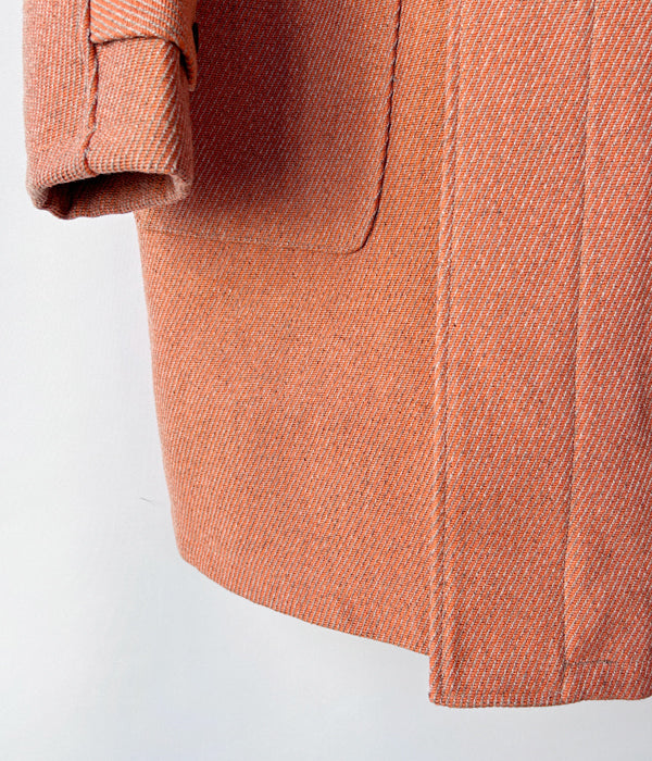 INTERIMから、HYPER BIG CASHMERE HEAVY ROYAL NAVY DUFFEL COATが入荷しました。カシミア入りのウール素材を用いて、やや厚手で畝の高いトリコチン生地をオリジナルで製作しダッフルコートに仕立て上げました。40~50年代のロイヤルネイビーのオーバーコートをヒントにざっくりとしたシルエットで設計された1着。ボリュームのある本水牛の2つ穴トグル、墨染めを施した麻混の紐などこだわり抜いたディティールがポイント。