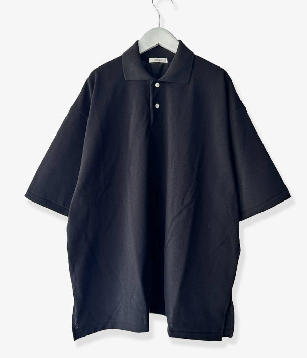 INTERIMから、HYPER BIG SEA ISLAND PIQUE POLO SHIRTが入荷しました。シーアイランドコットンを使用したオリジナル鹿の子素材を使用したスタンダードなディティールのポロシャツ。オーバーサイズ仕立てながらも裾のスリットですっきりとしたシルエットに。高瀬貝ボタンによる上品な印象の前立てがポイント。