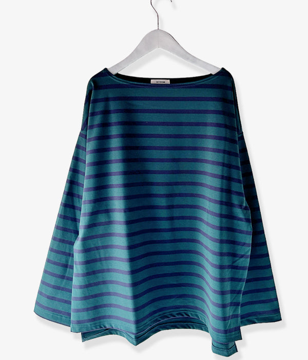 INTERIMから、HYPER BIG SUVIN GIZA BASQUE BORDER SHIRTが入荷しました。ハイパービッグサイズに仕立てたクラシックな仕様のバスクシャツ。前後異なる着丈のバランスと、サイドに設けたスリットが動きのあるシルエットを作り出します。しっかりとしたハリがありながらも、美しい光沢感と滑らかな質感が楽しめる素材の良さがうかがえる1着。