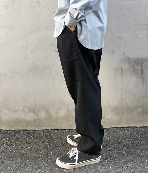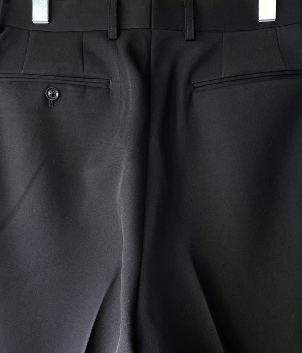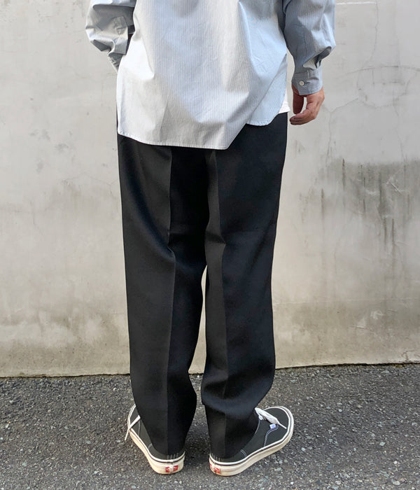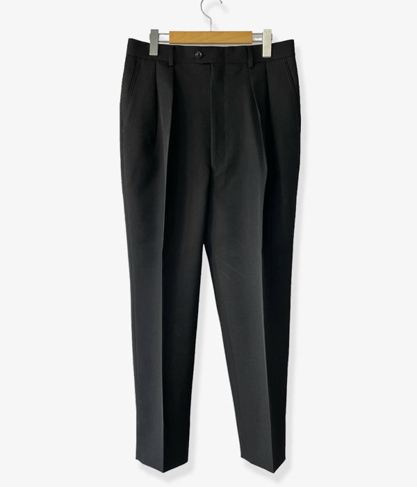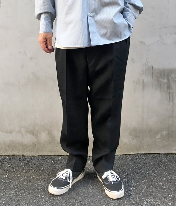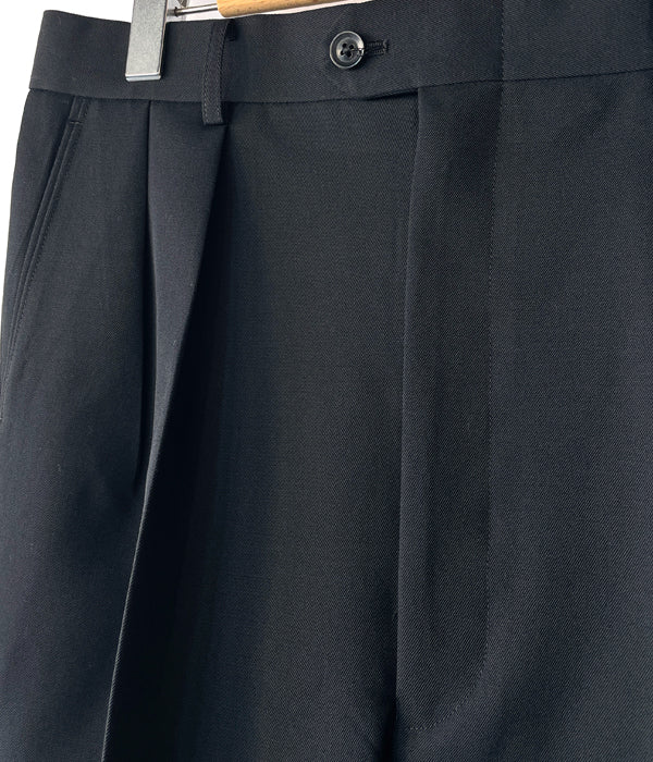 INTERIM/PURE BLACK WOOL GABERDINE 2-TUCK WIDE TAPERED SLACKS (BLACK)