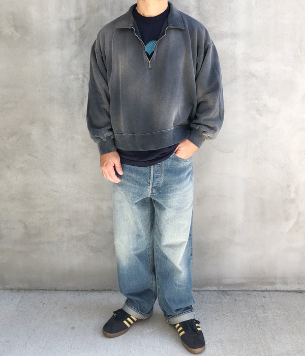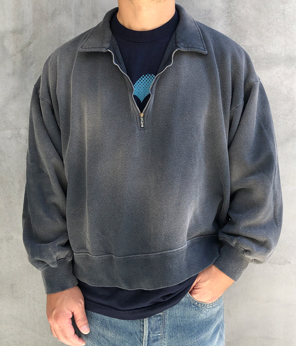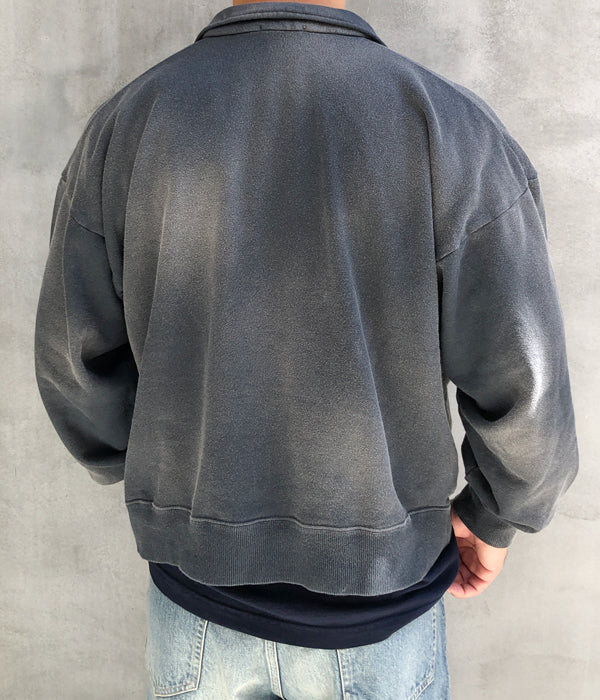 INTERIM/VINTAGE FADE HALF ZIP COLLAR SWEAT SHIRT (SUMI)