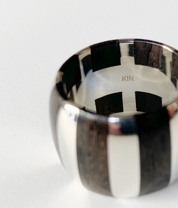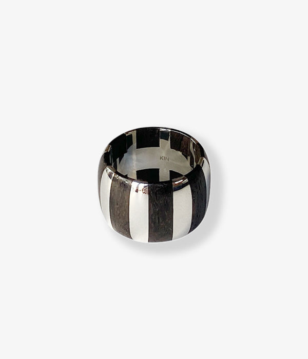 KINRADENからISADORA STRIPED RINGが入荷しました。木材の中でも高純度で高硬度と言われるアフリカの木(MPINGO WOOD)とのコンビネーションモデル。環境に配慮した厳選素材を使用し、持続可能性、丁寧な生産、循環型ビジネスモデルを軸にしたブランドとして、KINRADENは現代のファインジュエリー制作における重要な側面すべてを取り入れています。