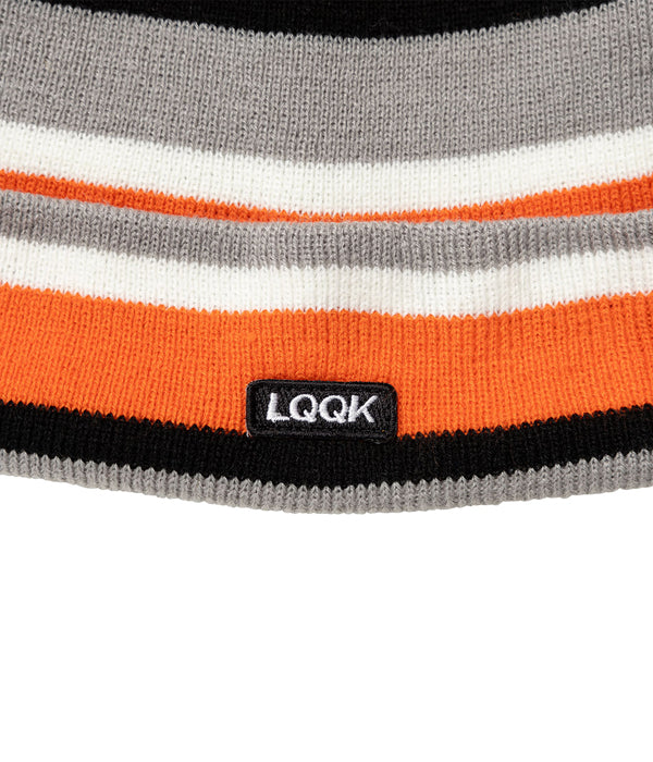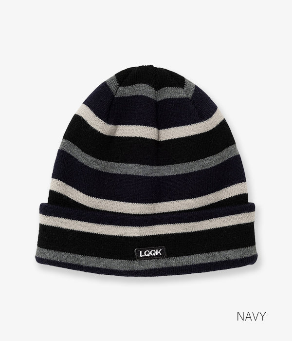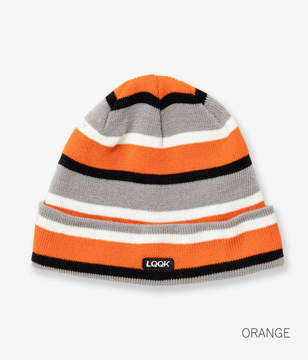 LQQK Studioから、BEANIEが入荷しました。カラフルなマルチボーダーによるニットキャップ。折り返し部分にLQQKのロゴを配置したデザイン。2色展開。
