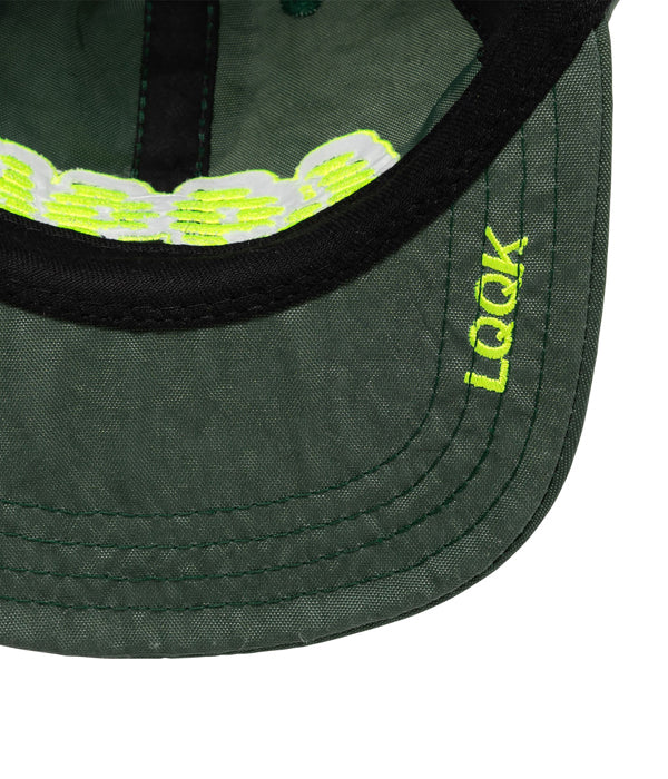 LQQK Studioから、CAPが入荷しました。フロントにLQQKのグラフィックをコントラストカラーであしらったナイロン製6PANEL CAP。くすんだグリーンにビビットなイエローが映えます。アジャスター調整可能。