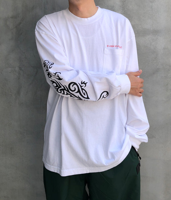 LQQK Studioから、CRAWLING PANTHER L/S TEEが入荷しました。アメリカ製のボディーにNYでプリントしたLQQK Studioらしいアイテム。右袖にトライバル柄を施し、胸ポケット上部のブランドロゴもポイント。