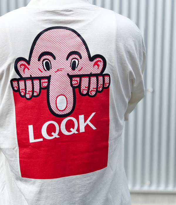 LQQK Studioから、ERIC ELMS - KILROY S/S TEEが入荷しました。エリック・エルムズを象徴するアートワーク、キルロイとLQQKのBOX LOGOを組み合わせたデザインのSS Tシャツ。堪える残暑の今から、冬場のレイヤードまで幅広くおすすめ。