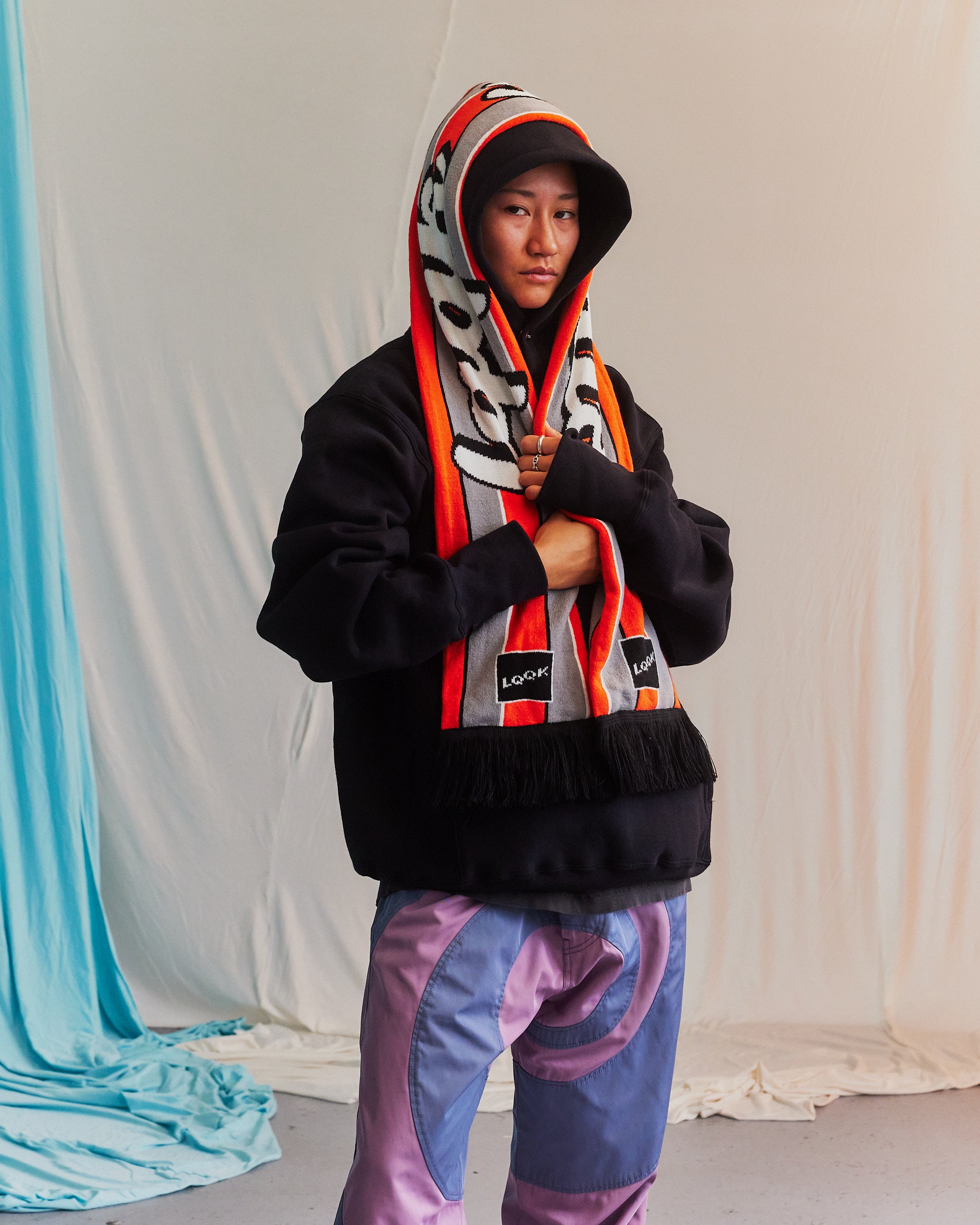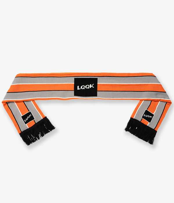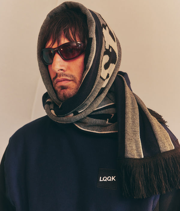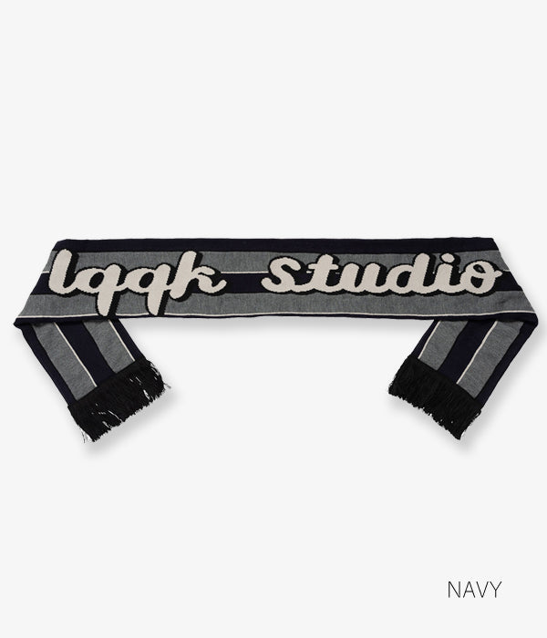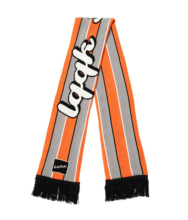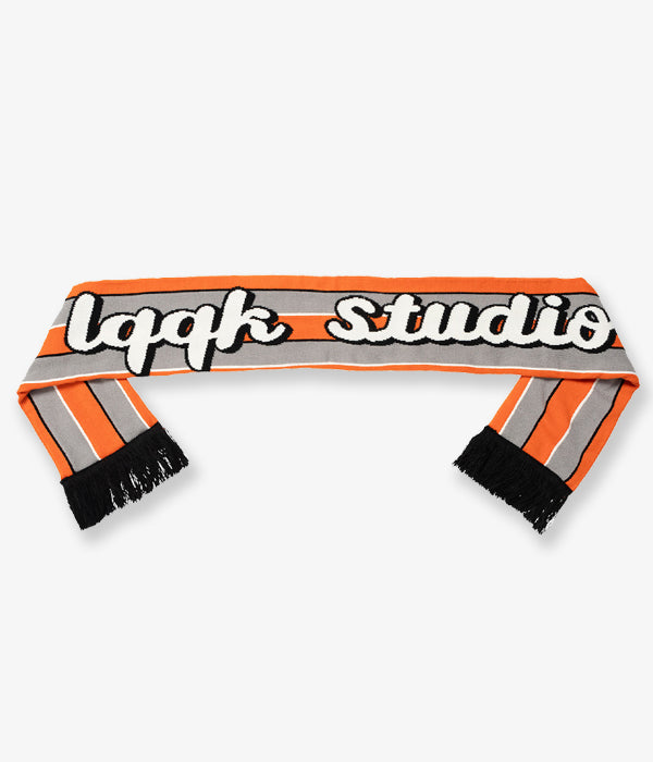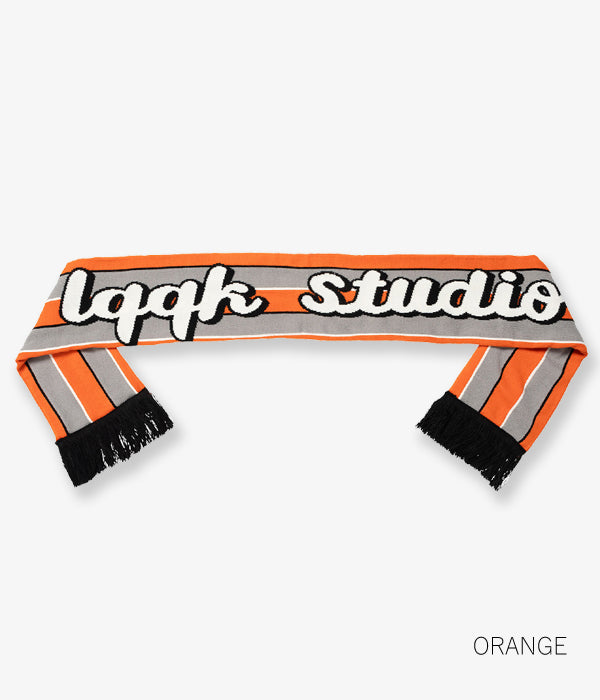 LQQK Studioから、KNIT SCARFが入荷しました。カラフルなマルチボーダーによるニットスカーフ。裏表にブランドネームとLQQKのBOX LOGOをあしらったデザイン。フリンジがポイントの2色展開。