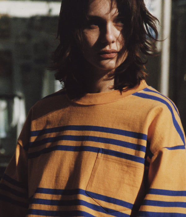 LQQK Studioから、L/S RUGBY WEIGHT POCKET TEEが入荷しました。ヘビーウェイトの素材を使用し、3本線のボーダー柄LS。柄合わせした胸ポケットに配置したピスネームがポイント。