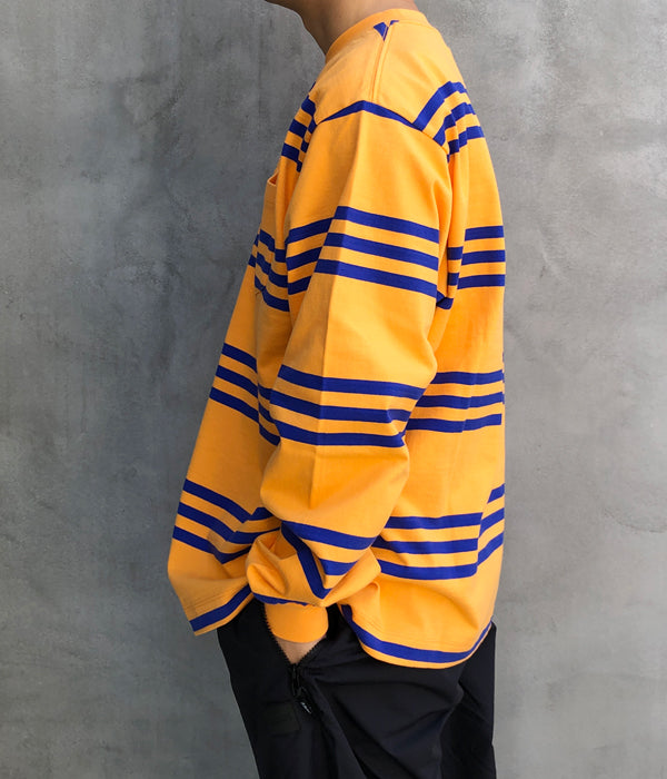 LQQK Studio/L/S RUGBY WEIGHT POCKET TEE (ORANGE x NAVY)