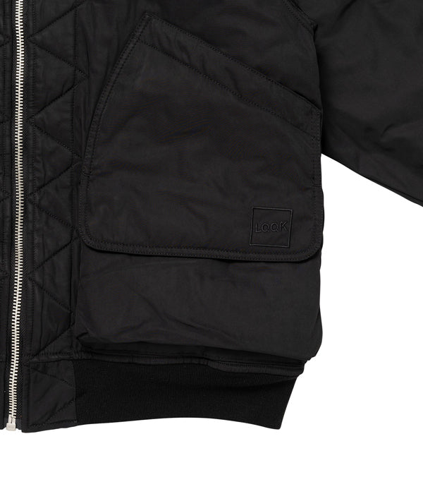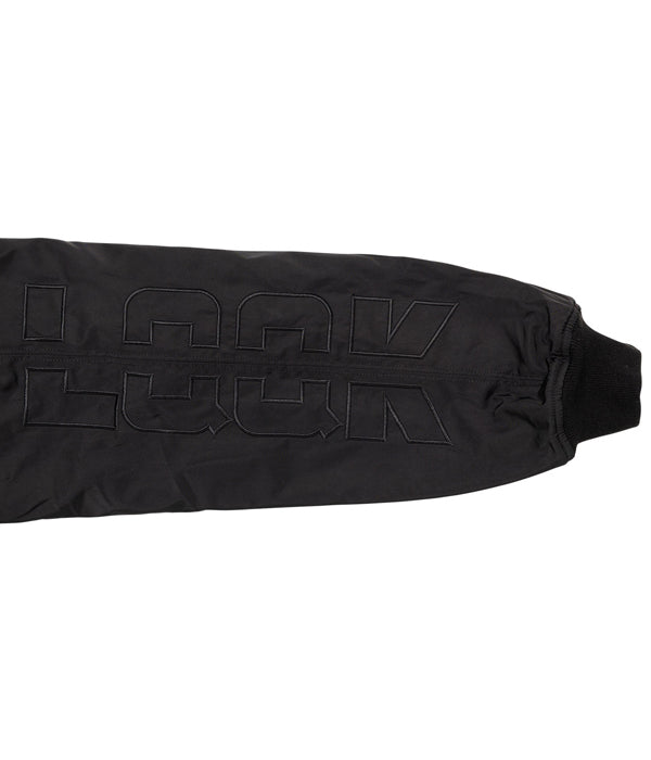 LQQK Studioから、LINER JACKETが入荷しました。フライトジャケットのようなフォルムのブルゾンジャケット。表地に滑らかなポリ素材、裏地にボアフリースを用いた保温性の高い1着。ポケットの形状がユニークで、LQQKの刺繍入りフラップをめくるとジップ付きポケットが姿を現します。スリーブのステッチに沿うように配置されたLQQKの刺繍デザインがポイント。
