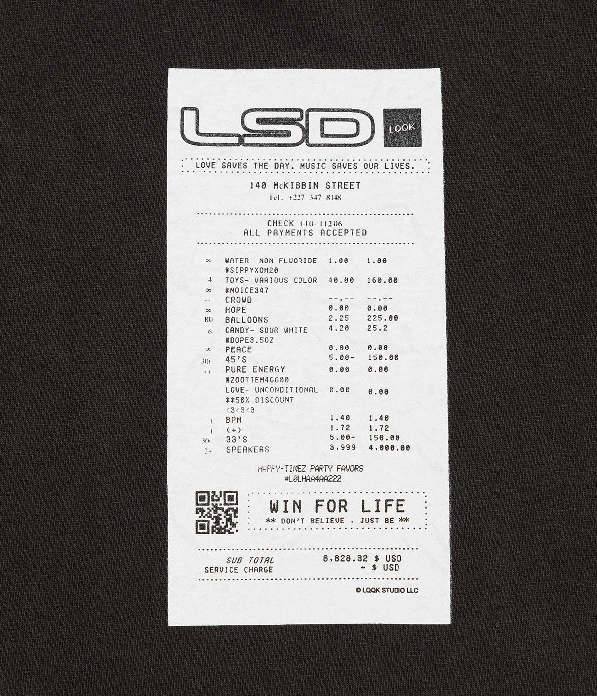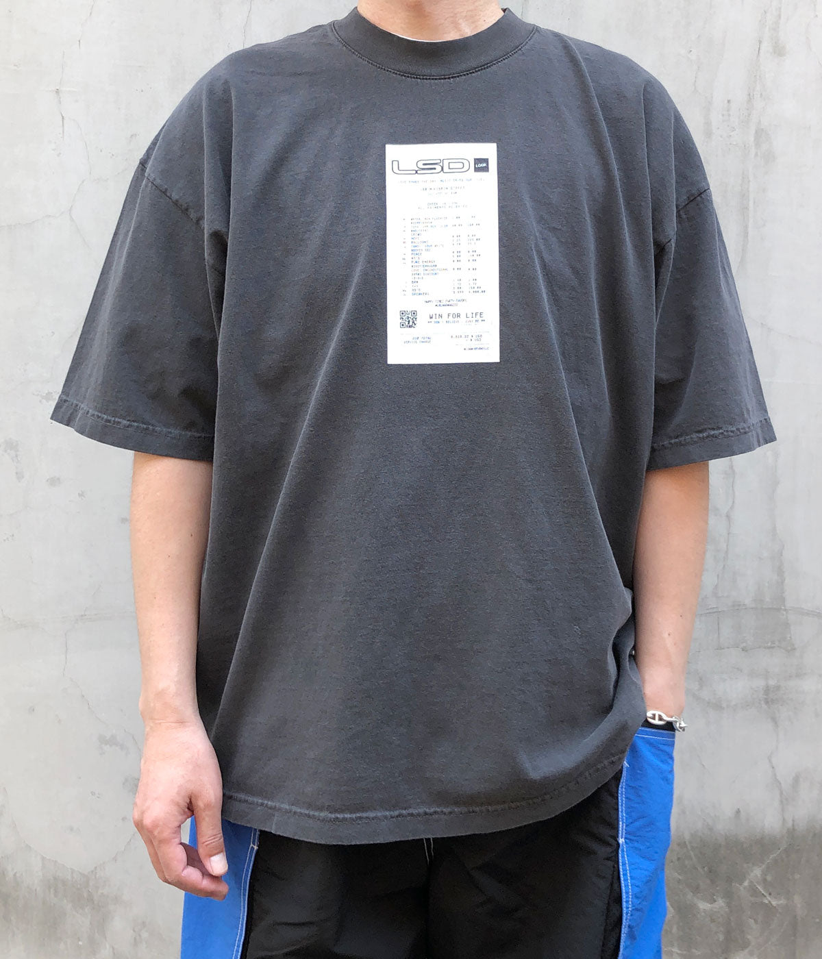 LQQK Studioから、LSD TEEが入荷しました。フロントにプリントしたレシートをモチーフにしたデザインがポイントの半袖Tシャツ。背面の裾周りにもデザインを施したインパクトのある1着です。