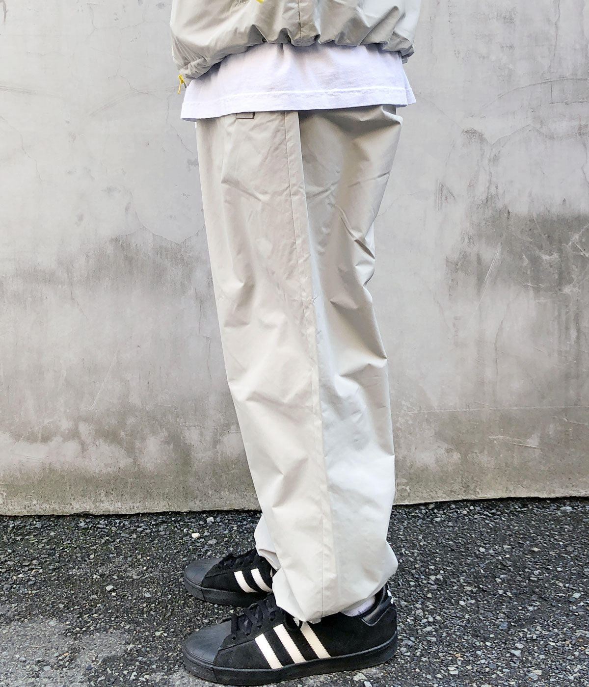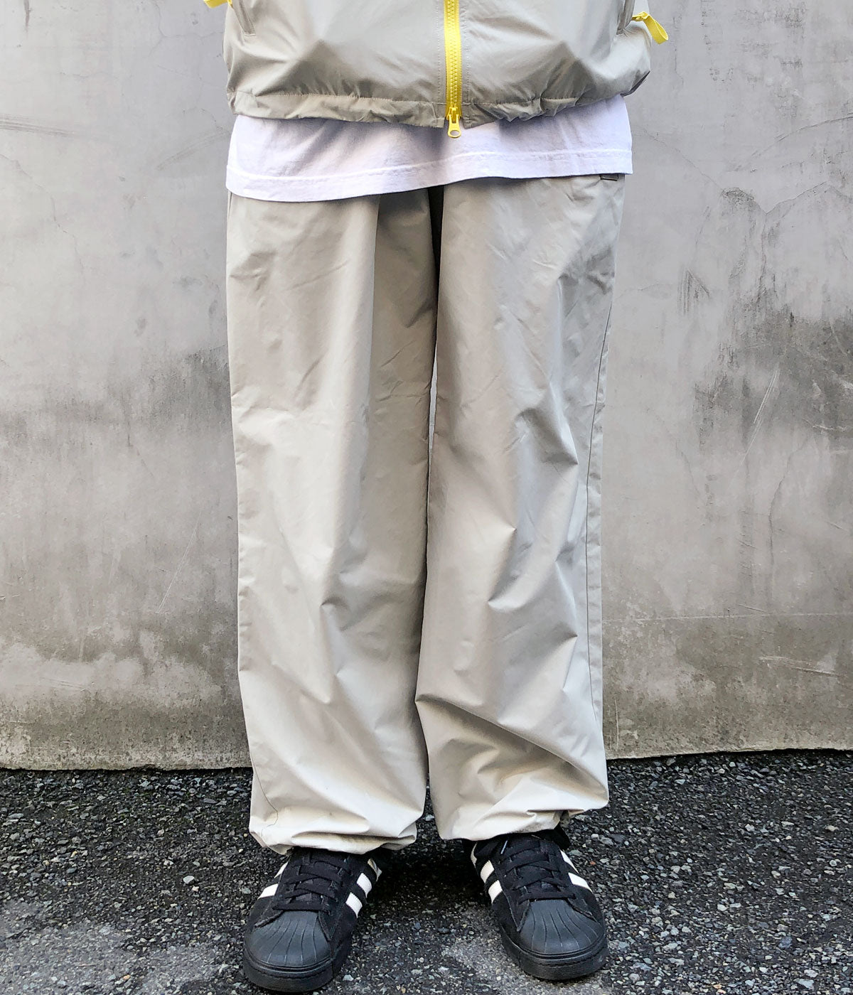 LQQK Studioから、NYLON PANTSが入荷しました。ナイロン素材を使用したゆったりとしたシルエットのイージーパンツ。ウェストはドローストリング&ゴム入り仕様。裾にもドローコードを仕込み、BOX LOGOでワンポイント。前後4か所のポケットにはファスナーを備えた実用性の高い作り。
