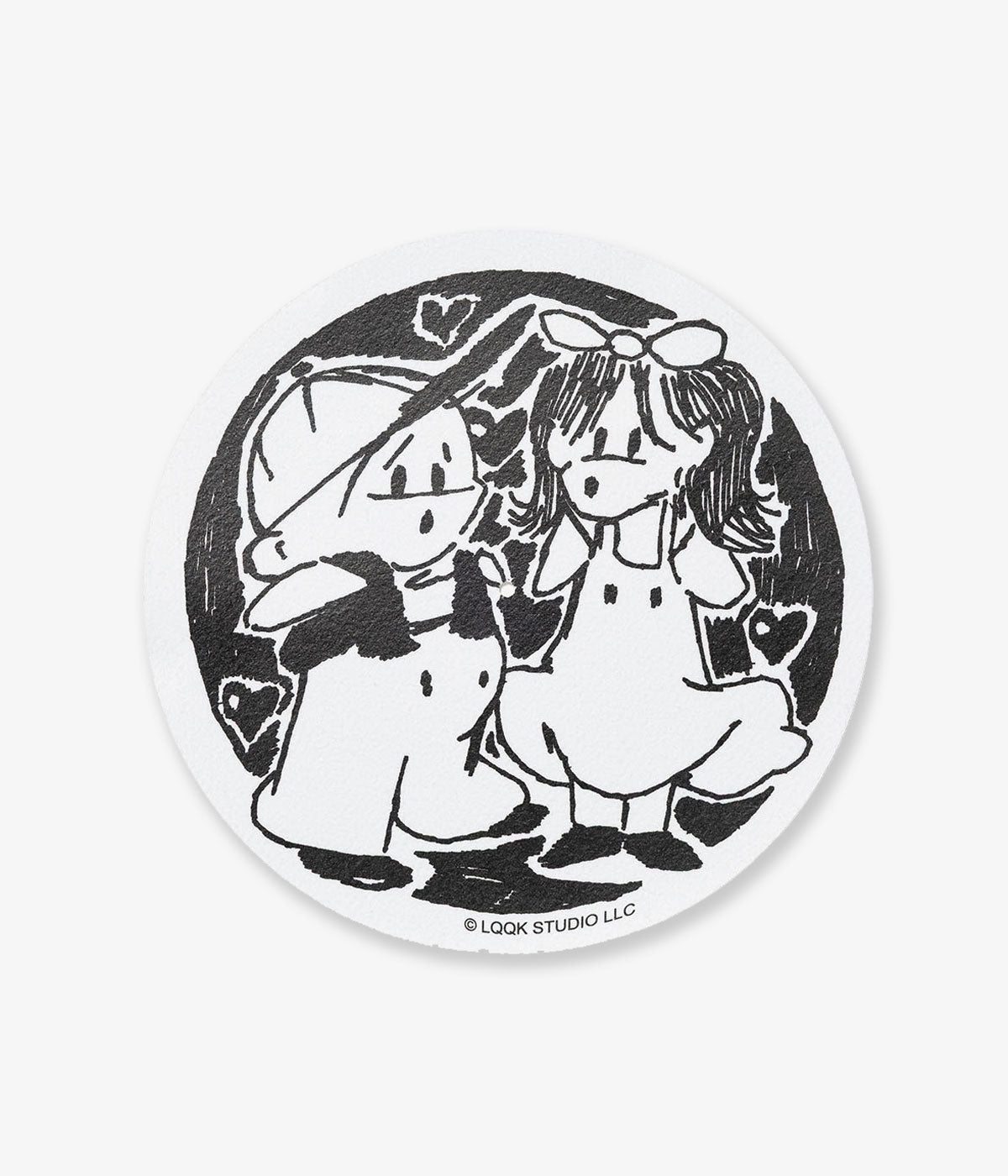 LQQK Studioから、RECORD MATTが入荷しました。12"レコードサイズのスリップマット、2枚セットです。モノトーンでヤングラブなグラフィックが描かれたかわいいデザインです。