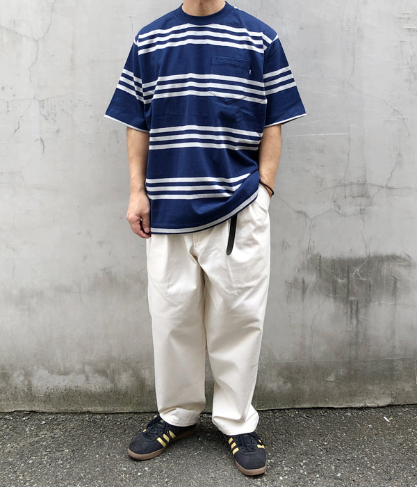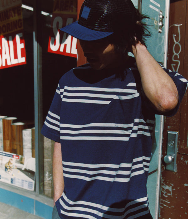 LQQK Studioから、S/S RUGBY WEIGHT POCKET TEEが入荷しました。ヘビーウェイトなコットン素材を使用し、3本線のボーダー柄SS。柄合わせした胸ポケットに配置したピスネームがポイント。